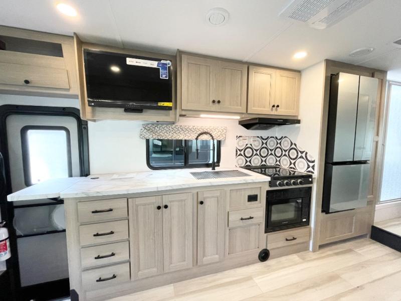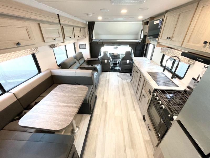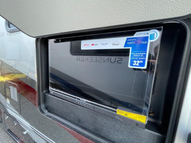 With any Sunseeker Class C gas motorhome by Forest River, you will enjoy more features and quality construction at a great value! Each model comes standard with a fiberglass roof and 2" aluminum framed laminated sidewalls for maximum durability. The Winegard Air 360+ digital antenna is your all-in-one solution for your internet, TV, and FM signal needs, and you have Gateway 4G Wi-Fi capability too. The exterior has an outside shower, heated/enclosed tanks, Rotocast storage compartments, and a power awning with an LED light strip to name a few conveniences. Each drive will be made easy thanks to a 10" touchscreen CarPlay/Android radio with USB and Bluetooth, backup camera/side view cameras with a 3-way monitor, and Ultraleather seating for added comfort. You'll also love the black out roller shades, soft touch self-closing drawer guides, oxygen-infused shower head with a flexible extension, and many more interior comforts!