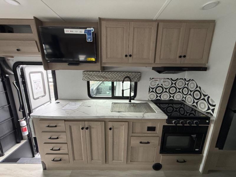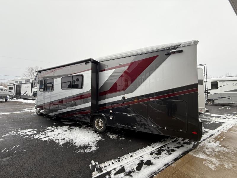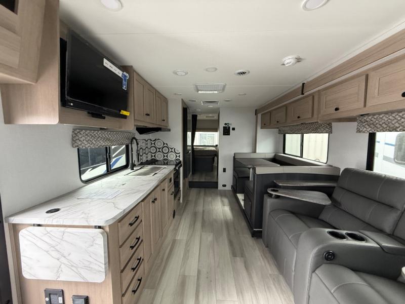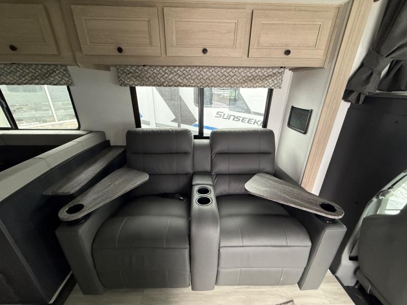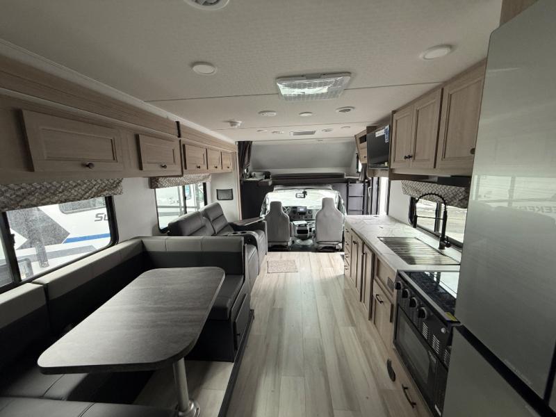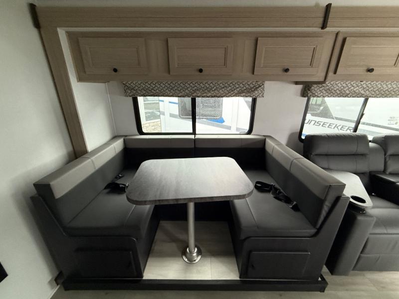 With any Sunseeker Class C gas motorhome by Forest River, you will enjoy more features and quality construction at a great value! Each model comes standard with a fiberglass roof and 2" aluminum framed laminated sidewalls for maximum durability. The Winegard Air 360+ digital antenna is your all-in-one solution for your internet, TV, and FM signal needs, and you have Gateway 4G Wi-Fi capability too. The exterior has an outside shower, heated/enclosed tanks, Rotocast storage compartments, and a power awning with an LED light strip to name a few conveniences. Each drive will be made easy thanks to a 10" touchscreen CarPlay/Android radio with USB and Bluetooth, backup camera/side view cameras with a 3-way monitor, and Ultraleather seating for added comfort. You'll also love the black out roller shades, soft touch self-closing drawer guides, oxygen-infused shower head with a flexible extension, and many more interior comforts!