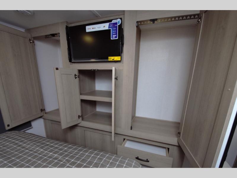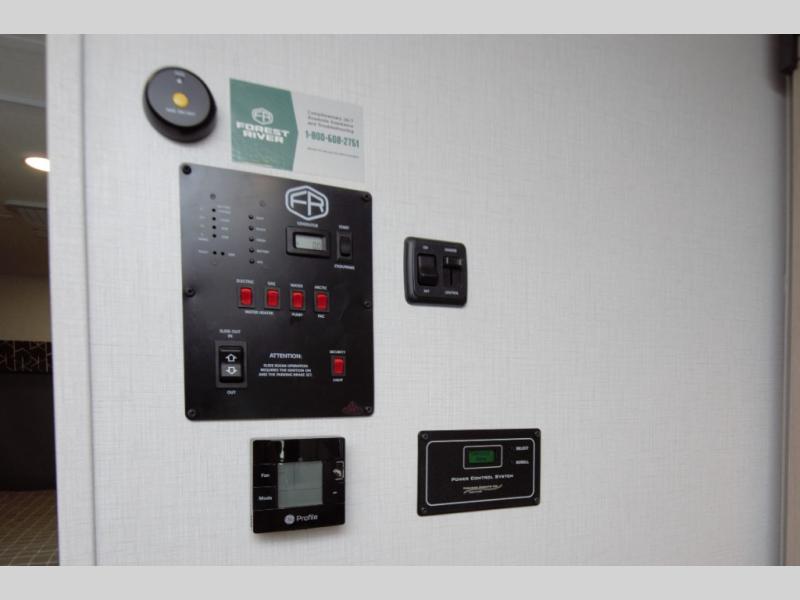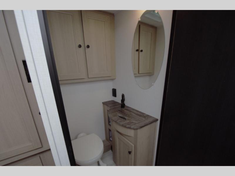 River Teak-Dove Grey Interior • Ice Blue Full Body Paint • Premium Camping Package • Dual High Efficiency A/C & Heat Pump w/Energy Shedding • 12V Power Theater Seating • 32" Outside TV • DS Swivel Seat w/Booster Seat • PS Swivel Seat w/Booster Seat • Automatic Leveling Jacks • Premium Camping Package • RVIA Seal