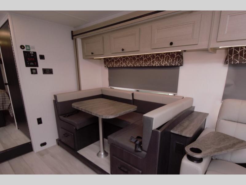 Every journey is smoother with features designed for performance and comfort. Dual high-efficiency A/C units with heat pumps and energy shedding keep the climate perfect in any season, while automatic leveling jacks make setup a breeze. The driver and passenger swivel seats with booster cushions add versatility and comfort on the road. Back-up and side-view cameras enhance confidence wherever you travel, and the durable construction ensures lasting reliability. From weekend getaways to extended trips, the Sunseeker Classic 3010DS delivers effortless luxury and adventure-ready performance in one dynamic motorhome.