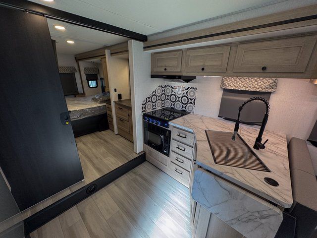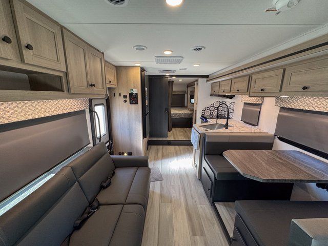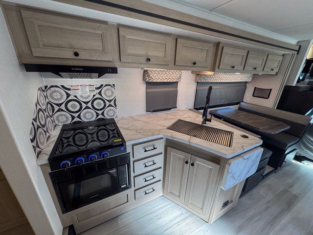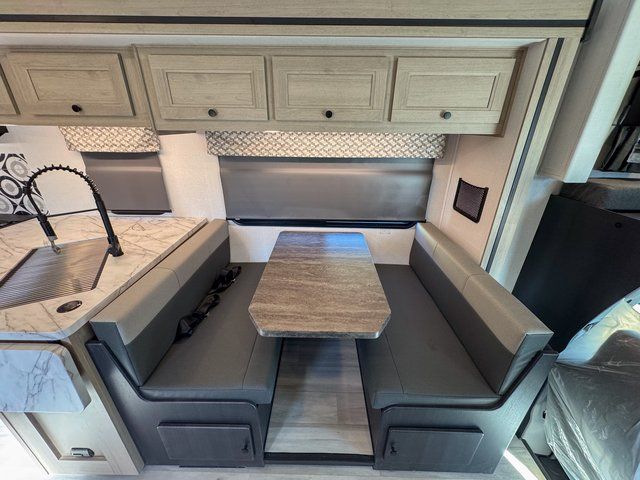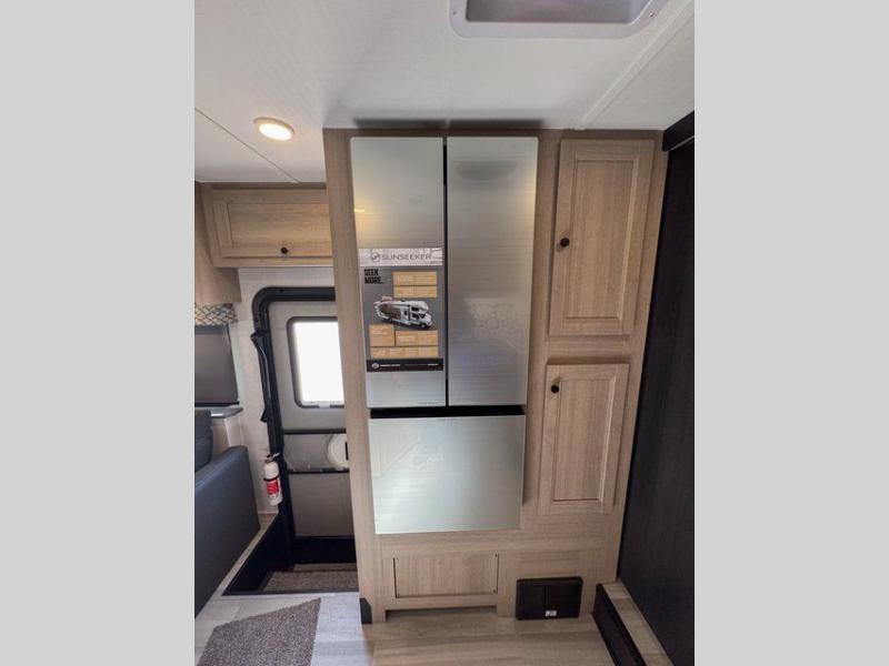 With any Sunseeker Class C gas motorhome by Forest River, you will enjoy more features and quality construction at a great value! Each model comes standard with a fiberglass roof and 2" aluminum framed laminated sidewalls for maximum durability. The Winegard Air 360+ digital antenna is your all-in-one solution for your internet, TV, and FM signal needs, and you have Gateway 4G Wi-Fi capability too. The exterior has an outside shower, heated/enclosed tanks, Rotocast storage compartments, and a power awning with an LED light strip to name a few conveniences. Each drive will be made easy thanks to a 10" touchscreen CarPlay/Android radio with USB and Bluetooth, backup camera/side view cameras with a 3-way monitor, and Ultraleather seating for added comfort. You'll also love the black out roller shades, soft touch self-closing drawer guides, oxygen-infused shower head with a flexible extension, and many more interior comforts!