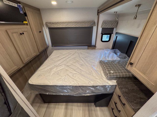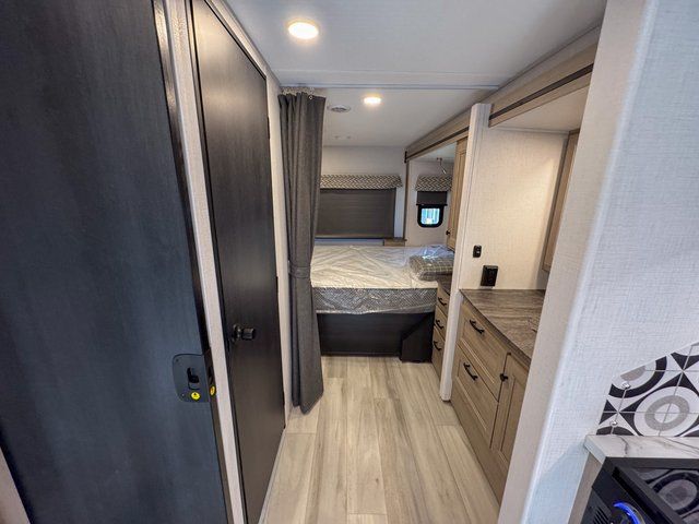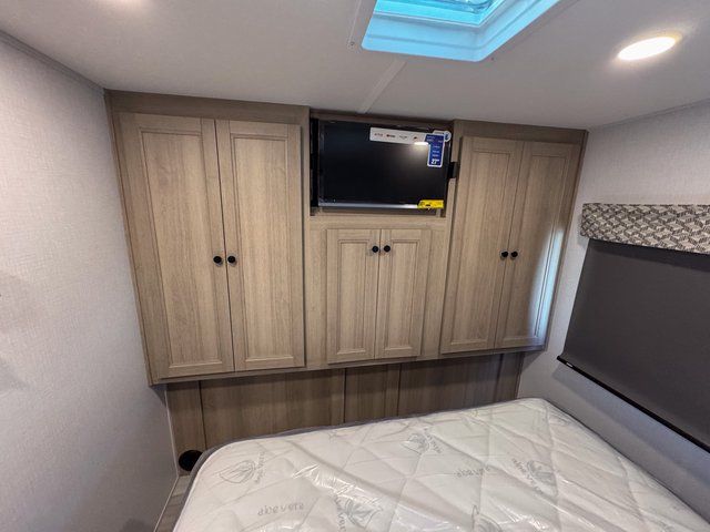 It's time to put boring vacations behind you and spend the rest of your life enjoying fun in the sun with this motorhome! You have lots of interior living space with a full-wall slide, and the rear private bedroom offers you a queen-size bed, 12V bedroom TV, linen closet, and two wardrobes. You'll be right next to the split-style bathroom when you're in the bedroom, and the kitchen is just on the other side of the bathroom. In the kitchen is where you will find the convection microwave, flip-up countertop, 10.7-cubic foot refrigerator, pantry, and three-burner range. You'll also have some lounging space with the sofa and booth dinette, and the bunk over the cab can be switched out for the optional Trekker cap with built-in entertainment and storage.