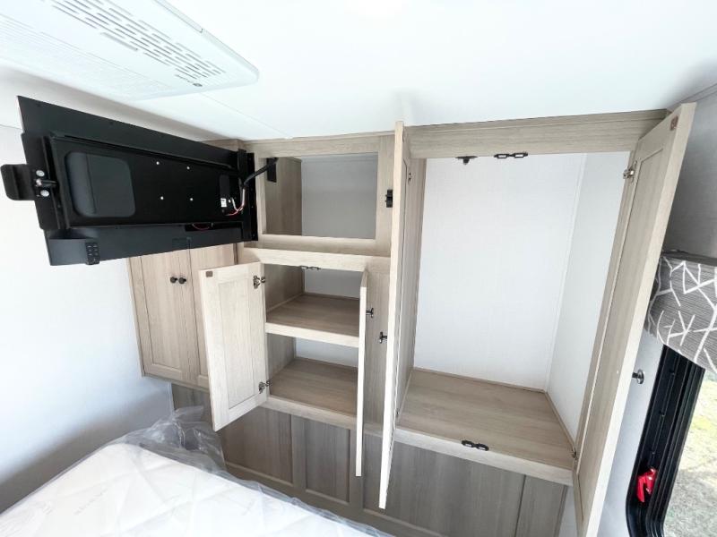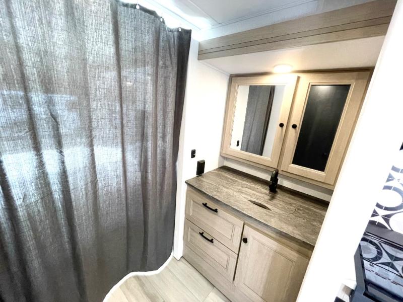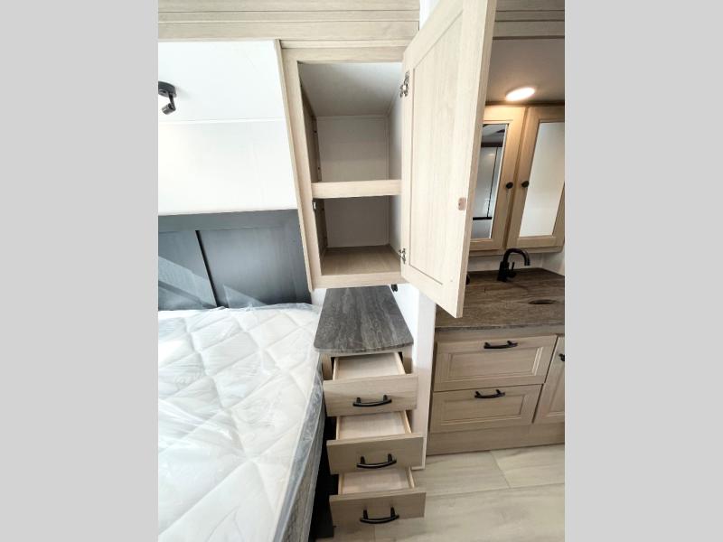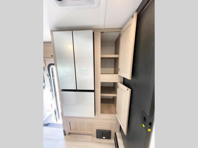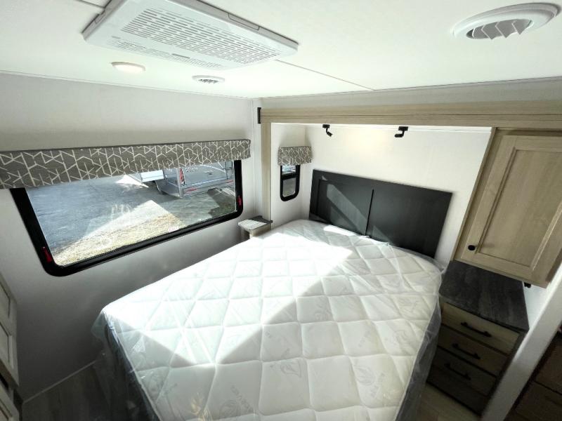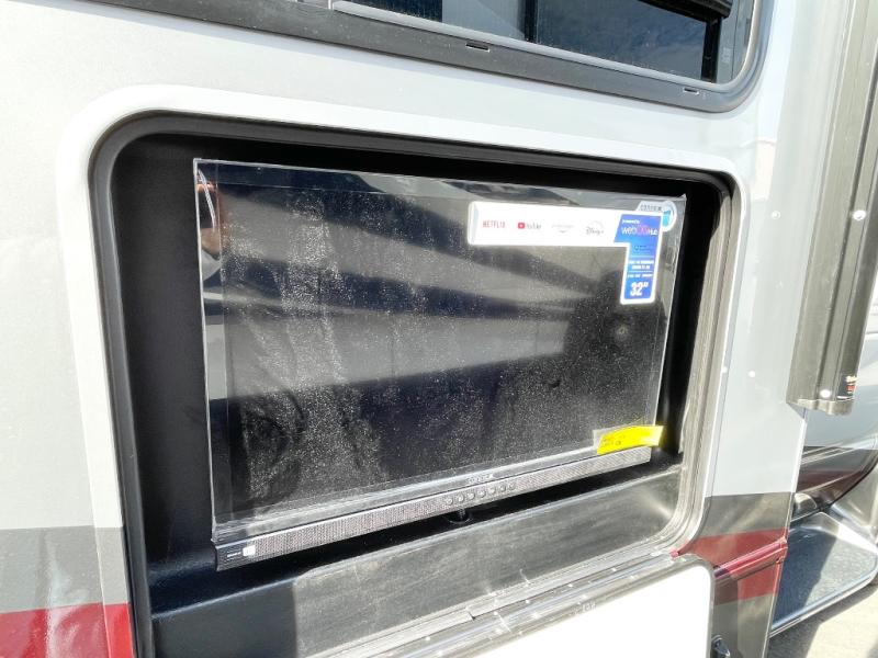 It's time to put boring vacations behind you and spend the rest of your life enjoying fun in the sun with this motorhome! You have lots of interior living space with a full-wall slide, and the rear private bedroom offers you a queen-size bed, 12V bedroom TV, linen closet, and two wardrobes. You'll be right next to the split-style bathroom when you're in the bedroom, and the kitchen is just on the other side of the bathroom. In the kitchen is where you will find the convection microwave, flip-up countertop, 10.7-cubic foot refrigerator, pantry, and three-burner range. You'll also have some lounging space with the sofa and booth dinette, and the bunk over the cab can be switched out for the optional Trekker cap with built-in entertainment and storage.