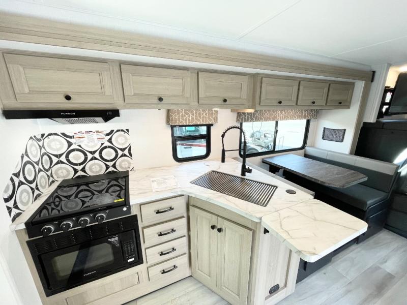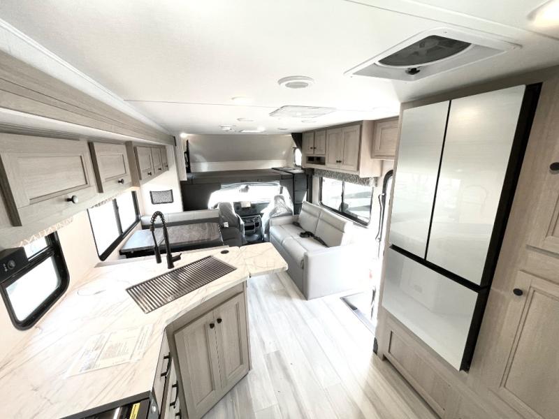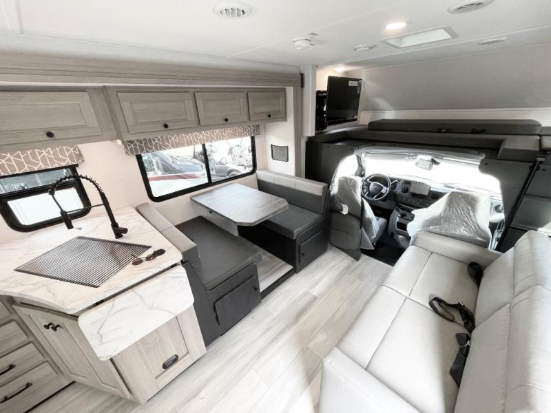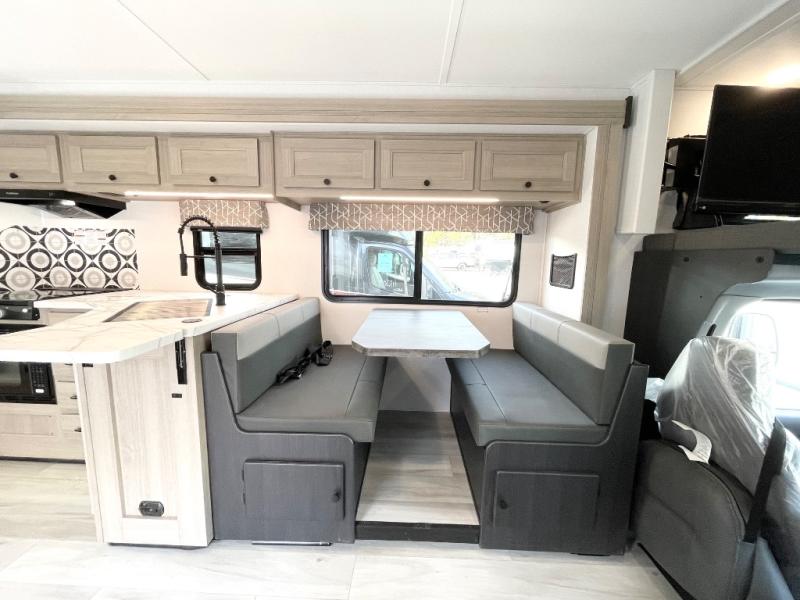With any Sunseeker Class C gas motorhome by Forest River, you will enjoy more features and quality construction at a great value! Each model comes standard with a fiberglass roof and 2" aluminum framed laminated sidewalls for maximum durability. The Winegard Air 360+ digital antenna is your all-in-one solution for your internet, TV, and FM signal needs, and you have Gateway 4G Wi-Fi capability too. The exterior has an outside shower, heated/enclosed tanks, Rotocast storage compartments, and a power awning with an LED light strip to name a few conveniences. Each drive will be made easy thanks to a 10" touchscreen CarPlay/Android radio with USB and Bluetooth, backup camera/side view cameras with a 3-way monitor, and Ultraleather seating for added comfort. You'll also love the black out roller shades, soft touch self-closing drawer guides, oxygen-infused shower head with a flexible extension, and many more interior comforts!