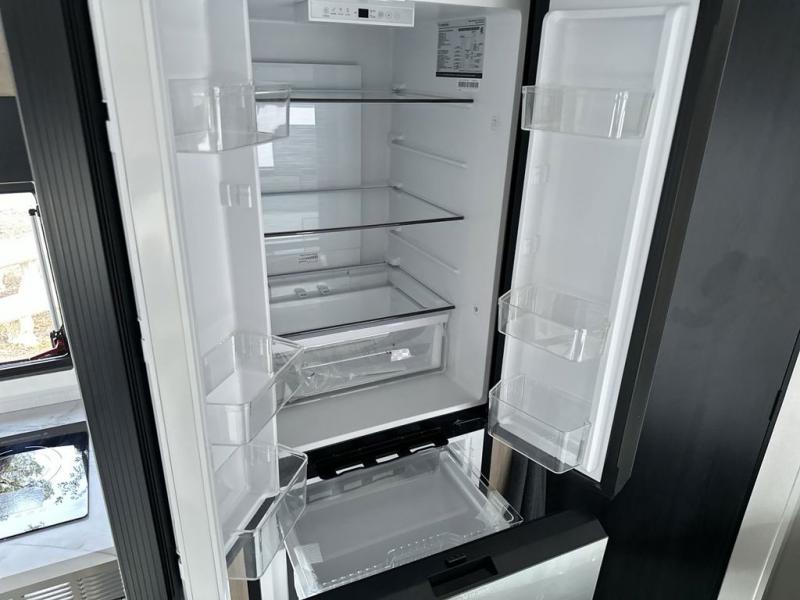 A lot of convenience has been packed into this coach with the full rear bathroom, the master suite, a complete kitchen, two TVs, and a bunk above the cab. An added bonus is the U-shaped dinette which can serve as a dining space or sleeping space depending on how you have it set up. If you don't need the bunk above cab for sleeping space, you could change it out for the optional Trekker cap with built-in entertainment center and storage. The kitchen is equipped with all of your favorites: a pantry, a convection microwave, a three-burner range, a flip-up countertop, and a 10.7-cubic foot refrigerator.