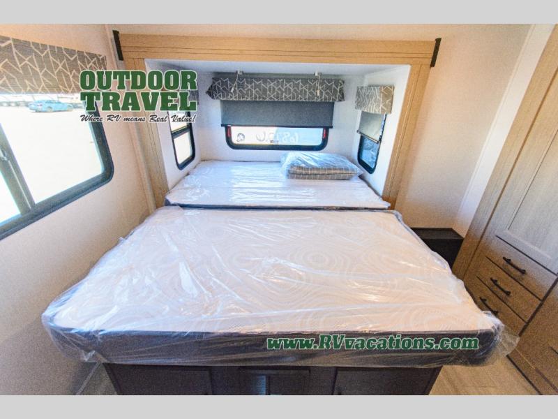 With any Sunseeker Classic Class C gas motorhome by Forest River, you will enjoy more features and quality construction at a great value! Each model comes standard with a fiberglass roof and 2" aluminum framed laminated sidewalls for maximum durability. The Winegard Air 360+ digital antenna is your all-in-one solution for your internet, TV, and FM signal needs, and you have Gateway 4G Wi-Fi capability too. The exterior has an outside shower, heated/enclosed tanks, Rotocast storage compartments, and a power awning with an LED light strip to name a few conveniences. Each drive will be made easy thanks to a 10" touchscreen CarPlay/Android radio with USB and Bluetooth, backup camera/side view cameras with a 3-way monitor, and Ultraleather seating for added comfort. You'll also love the black out roller shades, soft touch self-closing drawer guides, oxygen-infused shower head with a flexible extension, and many more interior comforts!
