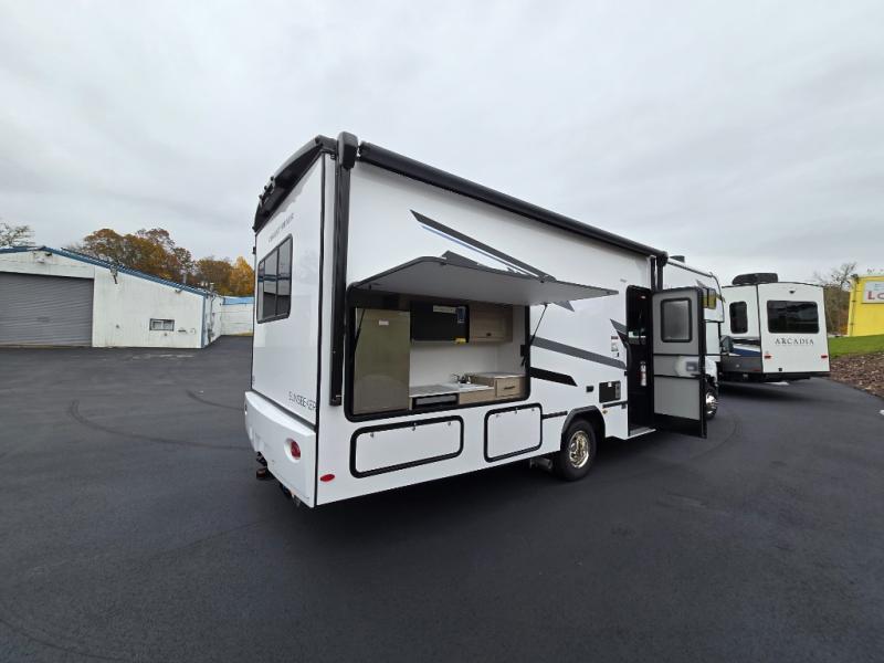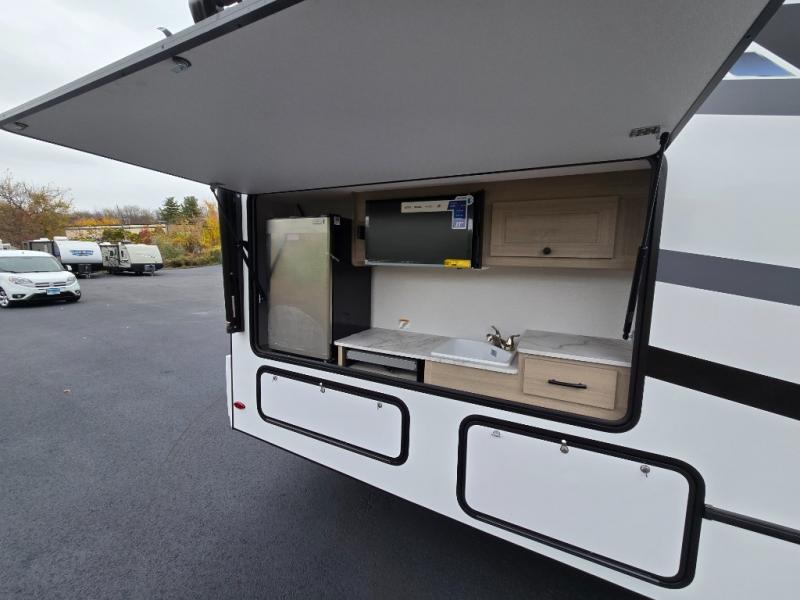 Grab your sunhat and your adventurous spirit and head out with this Sunseeker Classic Class C gas motorhome! There is a rear private bedroom to change your clothes and sleep soundly, and the RV queen bed slide adds more space to this area. The split-style bathroom has a 24" x 36" shower on one side of the coach while the lavatory and vanity stay secluded on the other side. If you don't need the extra sleeping space from the bunk over the cab, you can choose to add the optional Trekker cap with a built-in entertainment center and storage in its place. Sit back with a big bowl of cereal at the booth dinette, or get a little more comfortable on the sofa. You can also go outside to prepare some heartier food at the outdoor kitchen.