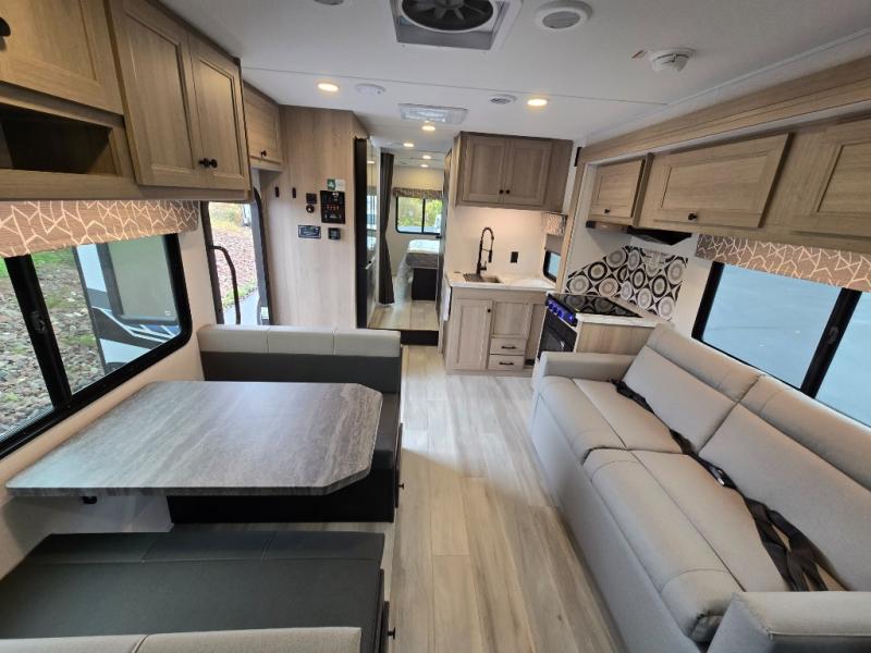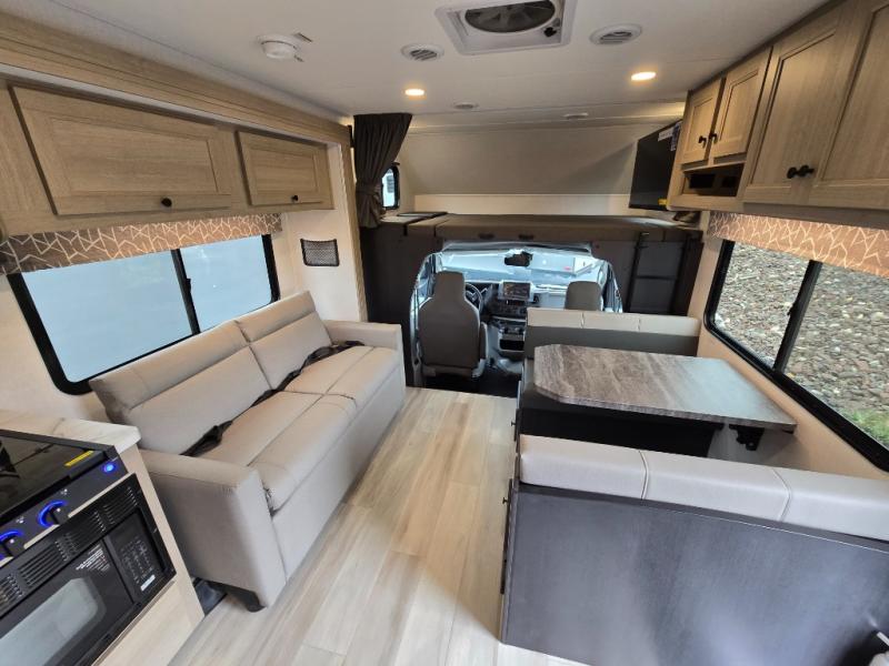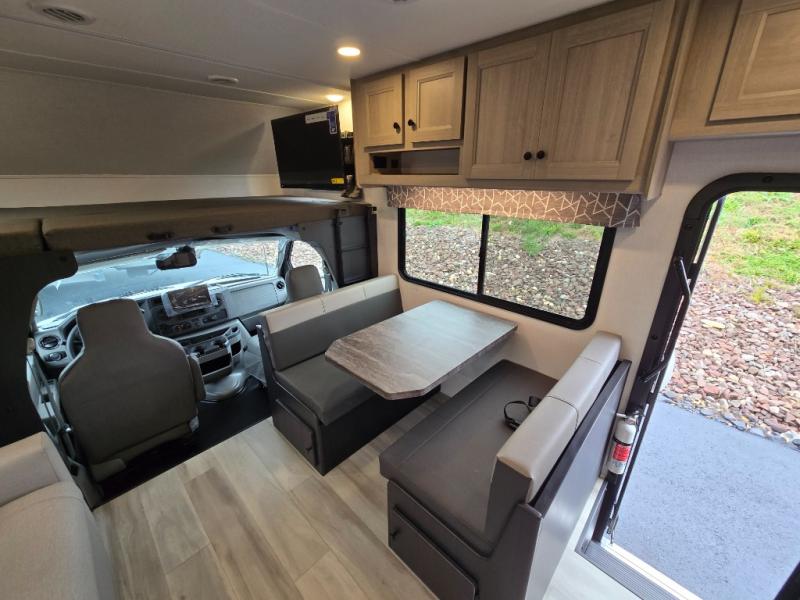 With any Sunseeker Classic Class C gas motorhome by Forest River, you will enjoy more features and quality construction at a great value! Each model comes standard with a fiberglass roof and 2" aluminum framed laminated sidewalls for maximum durability. The Winegard Air 360+ digital antenna is your all-in-one solution for your internet, TV, and FM signal needs, and you have Gateway 4G Wi-Fi capability too. The exterior has an outside shower, heated/enclosed tanks, Rotocast storage compartments, and a power awning with an LED light strip to name a few conveniences. Each drive will be made easy thanks to a 10" touchscreen CarPlay/Android radio with USB and Bluetooth, backup camera/side view cameras with a 3-way monitor, and Ultraleather seating for added comfort. You'll also love the black out roller shades, soft touch self-closing drawer guides, oxygen-infused shower head with a flexible extension, and many more interior comforts!