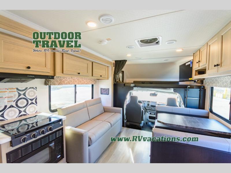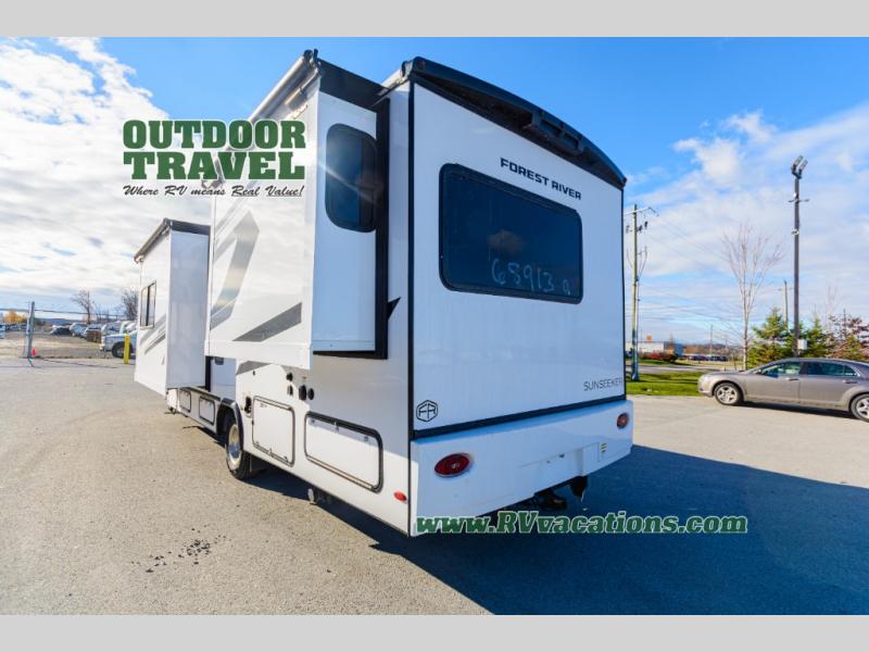With any Sunseeker Classic Class C gas motorhome by Forest River, you will enjoy more features and quality construction at a great value! Each model comes standard with a fiberglass roof and 2" aluminum framed laminated sidewalls for maximum durability. The Winegard Air 360+ digital antenna is your all-in-one solution for your internet, TV, and FM signal needs, and you have Gateway 4G Wi-Fi capability too. The exterior has an outside shower, heated/enclosed tanks, Rotocast storage compartments, and a power awning with an LED light strip to name a few conveniences. Each drive will be made easy thanks to a 10" touchscreen CarPlay/Android radio with USB and Bluetooth, backup camera/side view cameras with a 3-way monitor, and Ultraleather seating for added comfort. You'll also love the black out roller shades, soft touch self-closing drawer guides, oxygen-infused shower head with a flexible extension, and many more interior comforts!