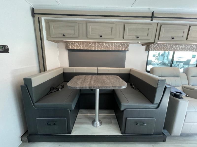 With any Sunseeker Classic Class C gas motorhome by Forest River, you will enjoy more features and quality construction at a great value! Each model comes standard with a fiberglass roof and 2" aluminum framed laminated sidewalls for maximum durability. The Winegard Air 360+ digital antenna is your all-in-one solution for your internet, TV, and FM signal needs, and you have Gateway 4G Wi-Fi capability too. The exterior has an outside shower, heated/enclosed tanks, Rotocast storage compartments, and a power awning with an LED light strip to name a few conveniences. Each drive will be made easy thanks to a 10" touchscreen CarPlay/Android radio with USB and Bluetooth, backup camera/side view cameras with a 3-way monitor, and Ultraleather seating for added comfort. You'll also love the black out roller shades, soft touch self-closing drawer guides, oxygen-infused shower head with a flexible extension, and many more interior comforts!