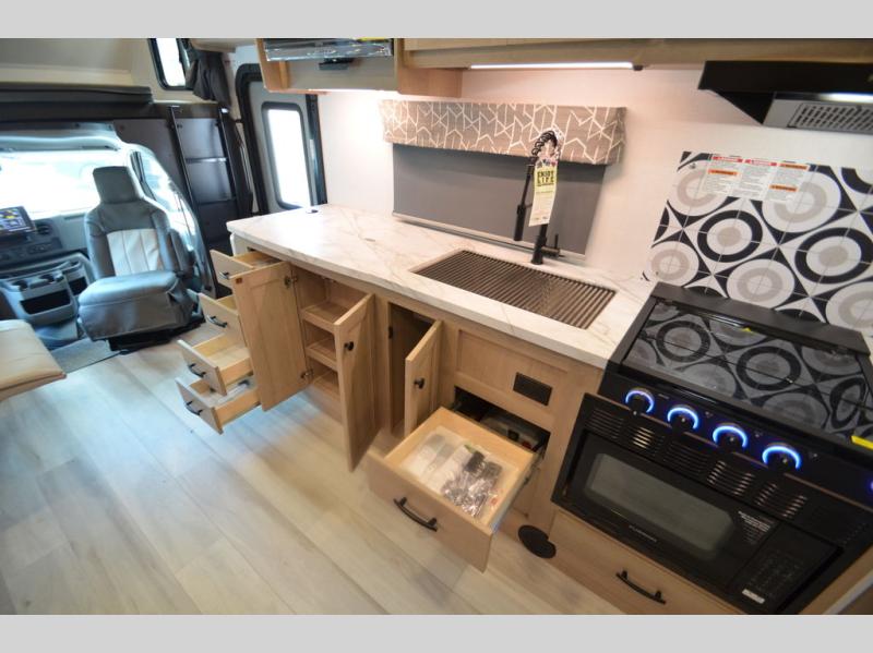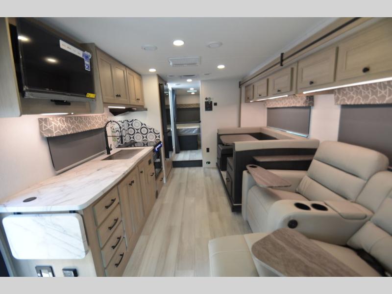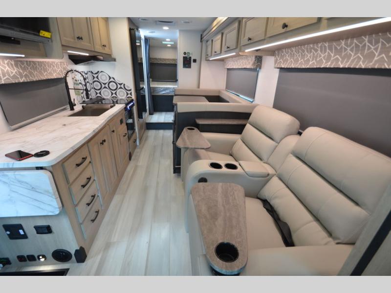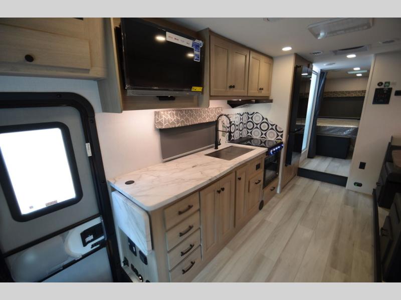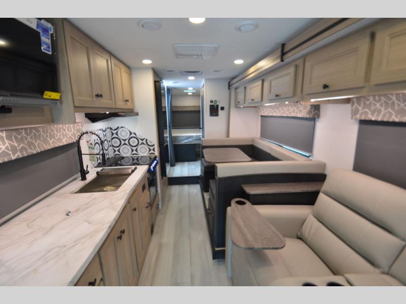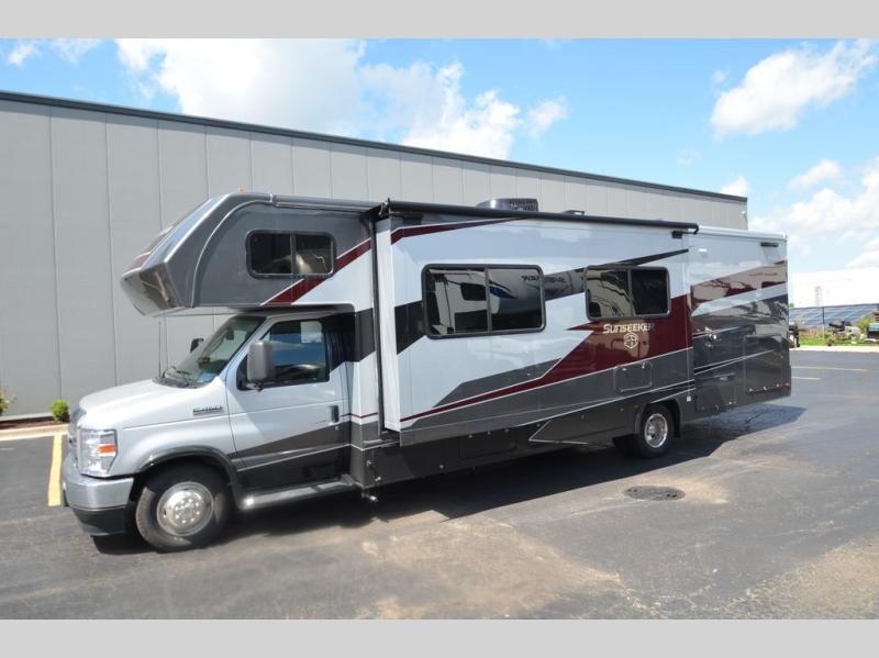 With any Sunseeker Classic Class C gas motorhome by Forest River, you will enjoy more features and quality construction at a great value! Each model comes standard with a fiberglass roof and 2" aluminum framed laminated sidewalls for maximum durability. The Winegard Air 360+ digital antenna is your all-in-one solution for your internet, TV, and FM signal needs, and you have Gateway 4G Wi-Fi capability too. The exterior has an outside shower, heated/enclosed tanks, Rotocast storage compartments, and a power awning with an LED light strip to name a few conveniences. Each drive will be made easy thanks to a 10" touchscreen CarPlay/Android radio with USB and Bluetooth, backup camera/side view cameras with a 3-way monitor, and Ultraleather seating for added comfort. You'll also love the black out roller shades, soft touch self-closing drawer guides, oxygen-infused shower head with a flexible extension, and many more interior comforts!