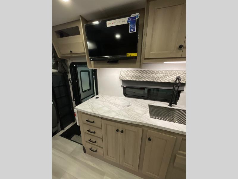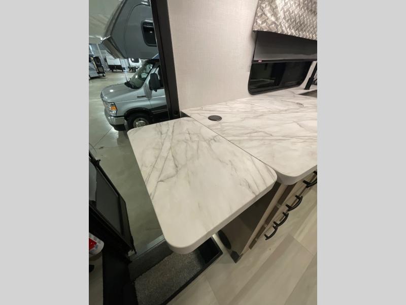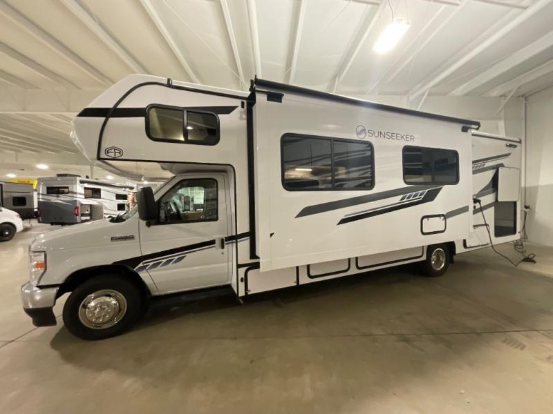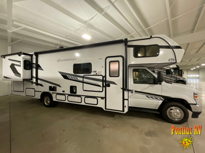 With any Sunseeker Classic Class C gas motorhome by Forest River, you will enjoy more features and quality construction at a great value! Each model comes standard with a fiberglass roof and 2" aluminum framed laminated sidewalls for maximum durability. The Winegard Air 360+ digital antenna is your all-in-one solution for your internet, TV, and FM signal needs, and you have Gateway 4G Wi-Fi capability too. The exterior has an outside shower, heated/enclosed tanks, Rotocast storage compartments, and a power awning with an LED light strip to name a few conveniences. Each drive will be made easy thanks to a 10" touchscreen CarPlay/Android radio with USB and Bluetooth, backup camera/side view cameras with a 3-way monitor, and Ultraleather seating for added comfort. You'll also love the black out roller shades, soft touch self-closing drawer guides, oxygen-infused shower head with a flexible extension, and many more interior comforts!