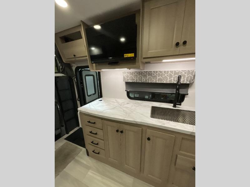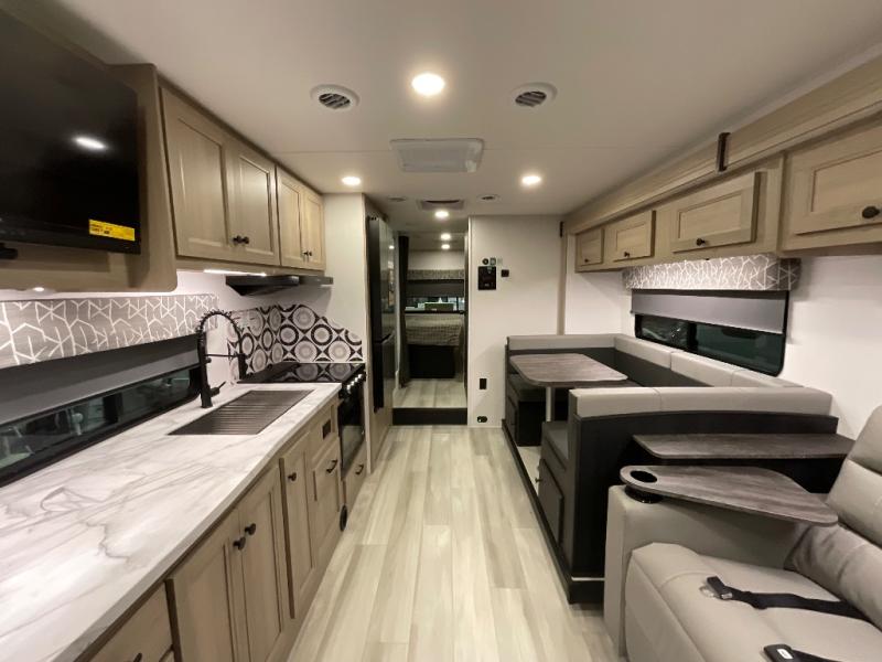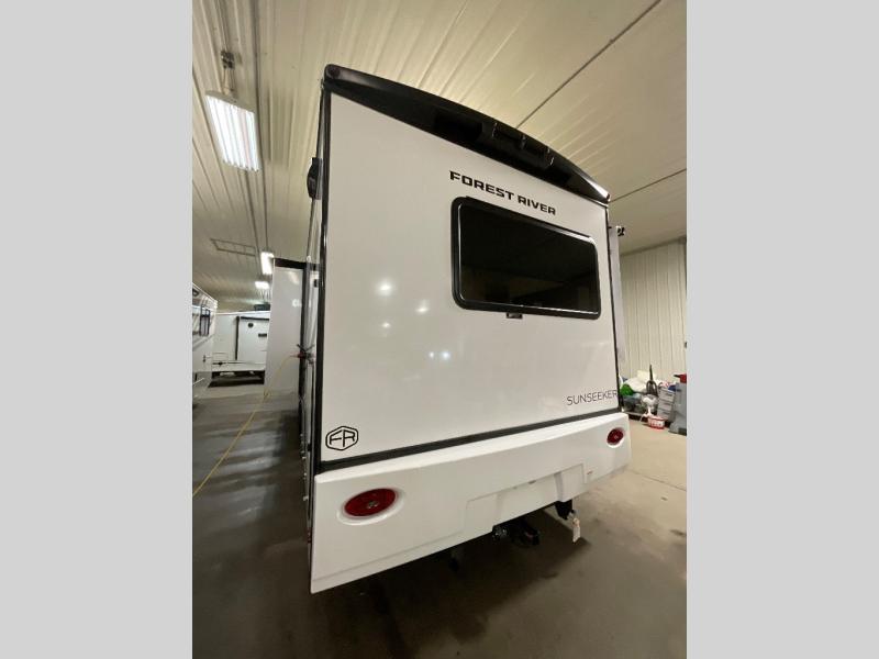 With any Sunseeker Classic Class C gas motorhome by Forest River, you will enjoy more features and quality construction at a great value! Each model comes standard with a fiberglass roof and 2" aluminum framed laminated sidewalls for maximum durability. The Winegard Air 360+ digital antenna is your all-in-one solution for your internet, TV, and FM signal needs, and you have Gateway 4G Wi-Fi capability too. The exterior has an outside shower, heated/enclosed tanks, Rotocast storage compartments, and a power awning with an LED light strip to name a few conveniences. Each drive will be made easy thanks to a 10" touchscreen CarPlay/Android radio with USB and Bluetooth, backup camera/side view cameras with a 3-way monitor, and Ultraleather seating for added comfort. You'll also love the black out roller shades, soft touch self-closing drawer guides, oxygen-infused shower head with a flexible extension, and many more interior comforts!