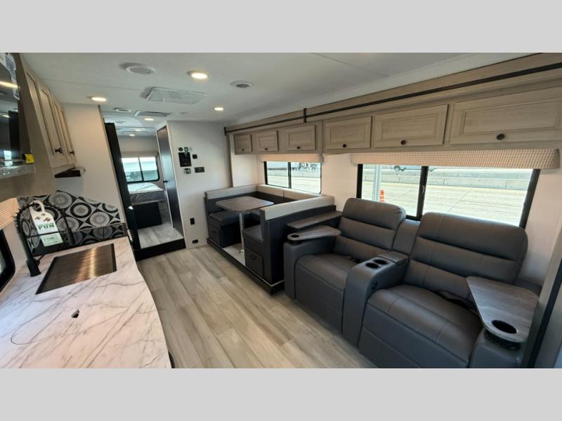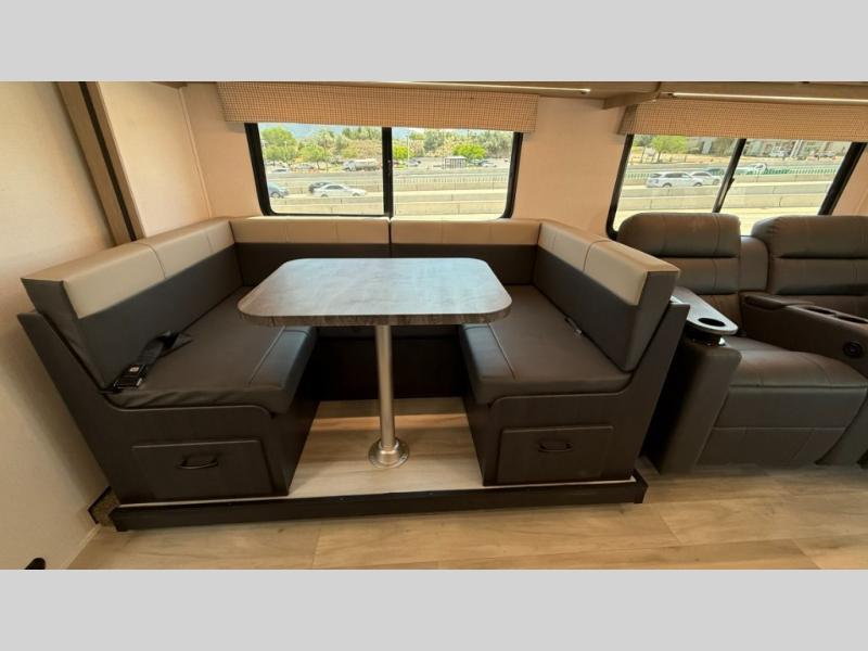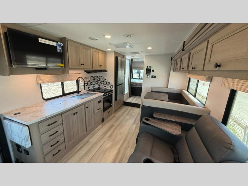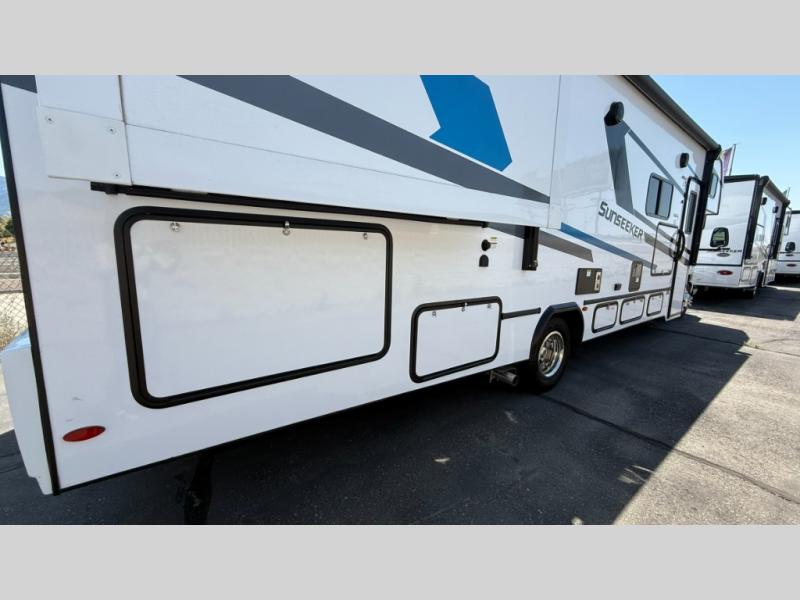 With any Sunseeker Classic Class C gas motorhome by Forest River, you will enjoy more features and quality construction at a great value! Each model comes standard with a fiberglass roof and 2" aluminum framed laminated sidewalls for maximum durability. The Winegard Air 360+ digital antenna is your all-in-one solution for your internet, TV, and FM signal needs, and you have Gateway 4G Wi-Fi capability too. The exterior has an outside shower, heated/enclosed tanks, Rotocast storage compartments, and a power awning with an LED light strip to name a few conveniences. Each drive will be made easy thanks to a 10" touchscreen CarPlay/Android radio with USB and Bluetooth, backup camera/side view cameras with a 3-way monitor, and Ultraleather seating for added comfort. You'll also love the black out roller shades, soft touch self-closing drawer guides, oxygen-infused shower head with a flexible extension, and many more interior comforts!