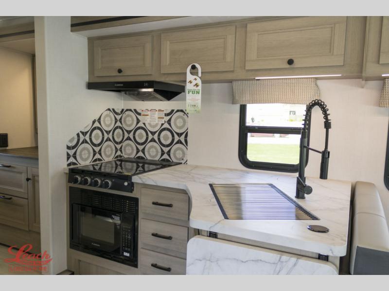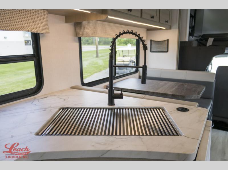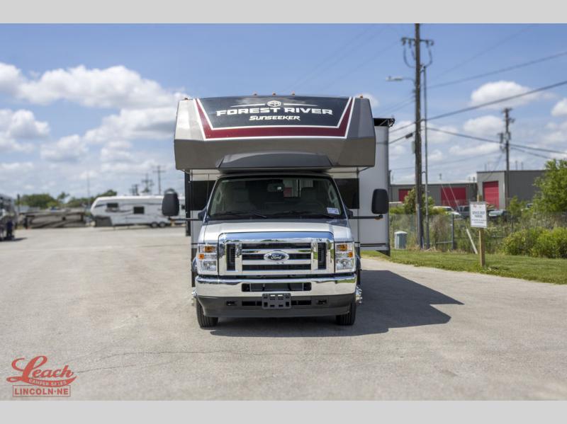 With any Sunseeker Classic Class C gas motorhome by Forest River, you will enjoy more features and quality construction at a great value! Each model comes standard with a fiberglass roof and 2" aluminum framed laminated sidewalls for maximum durability. The Winegard Air 360+ digital antenna is your all-in-one solution for your internet, TV, and FM signal needs, and you have Gateway 4G Wi-Fi capability too. The exterior has an outside shower, heated/enclosed tanks, Rotocast storage compartments, and a power awning with an LED light strip to name a few conveniences. Each drive will be made easy thanks to a 10" touchscreen CarPlay/Android radio with USB and Bluetooth, backup camera/side view cameras with a 3-way monitor, and Ultraleather seating for added comfort. You'll also love the black out roller shades, soft touch self-closing drawer guides, oxygen-infused shower head with a flexible extension, and many more interior comforts!