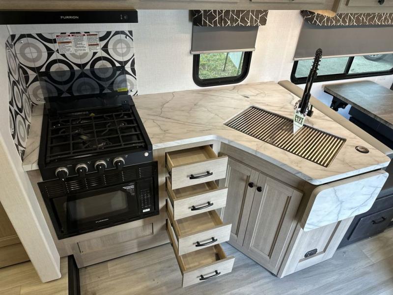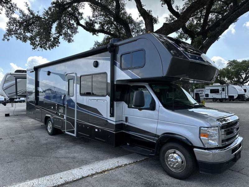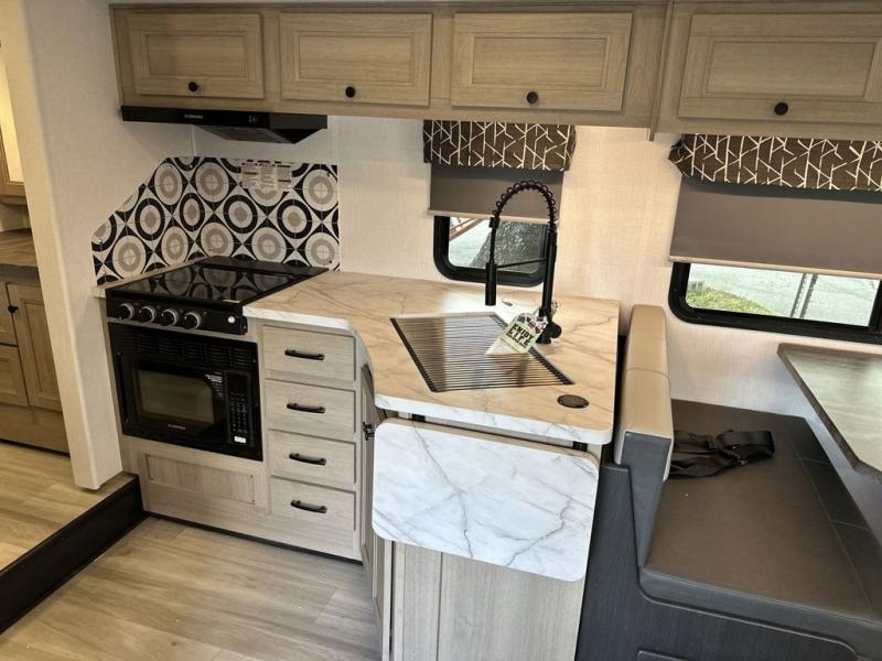 With any Sunseeker Classic Class C gas motorhome by Forest River, you will enjoy more features and quality construction at a great value! Each model comes standard with a fiberglass roof and 2" aluminum framed laminated sidewalls for maximum durability. The Winegard Air 360+ digital antenna is your all-in-one solution for your internet, TV, and FM signal needs, and you have Gateway 4G Wi-Fi capability too. The exterior has an outside shower, heated/enclosed tanks, Rotocast storage compartments, and a power awning with an LED light strip to name a few conveniences. Each drive will be made easy thanks to a 10" touchscreen CarPlay/Android radio with USB and Bluetooth, backup camera/side view cameras with a 3-way monitor, and Ultraleather seating for added comfort. You'll also love the black out roller shades, soft touch self-closing drawer guides, oxygen-infused shower head with a flexible extension, and many more interior comforts!