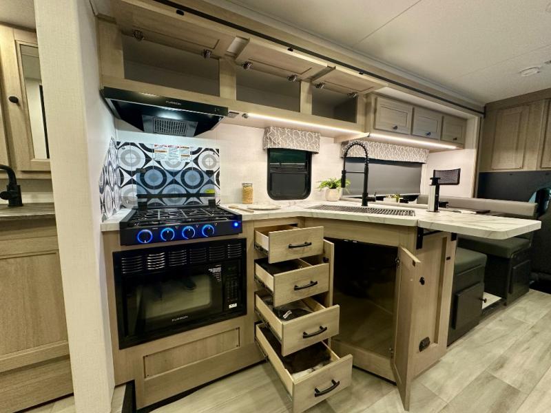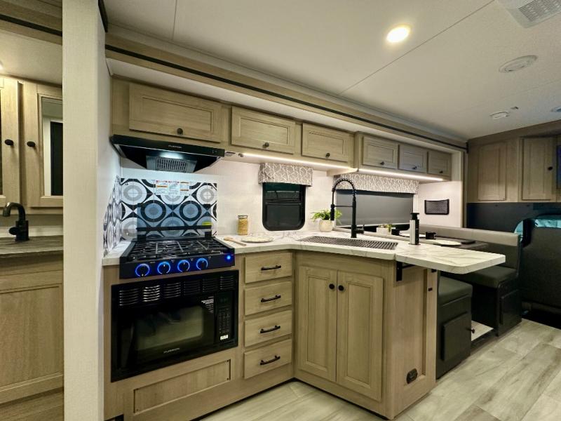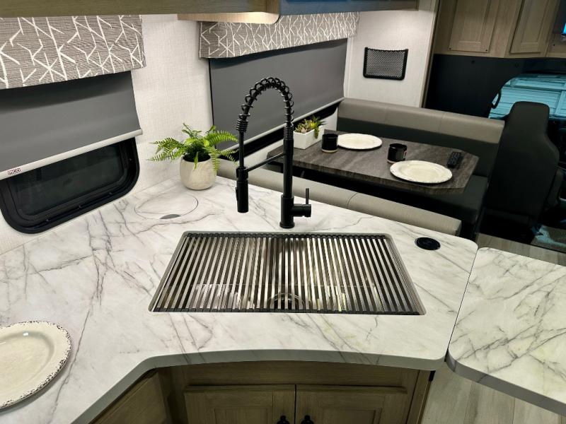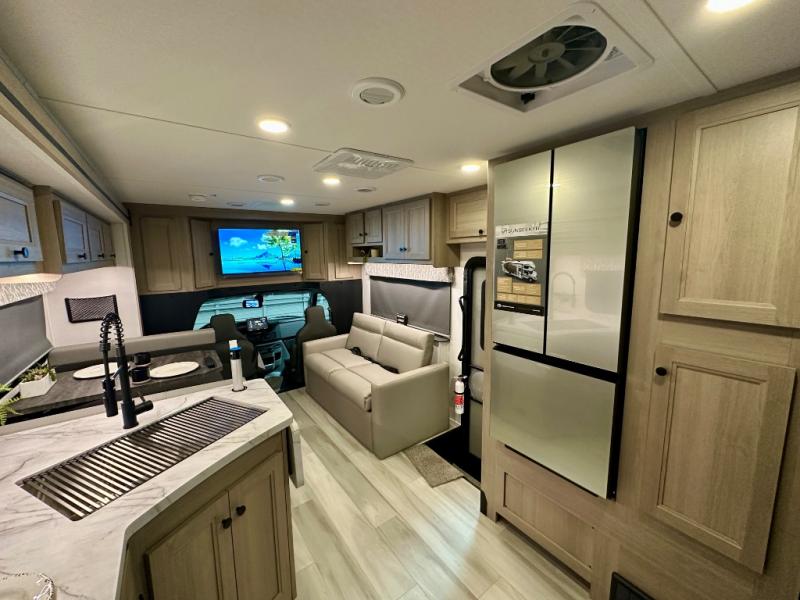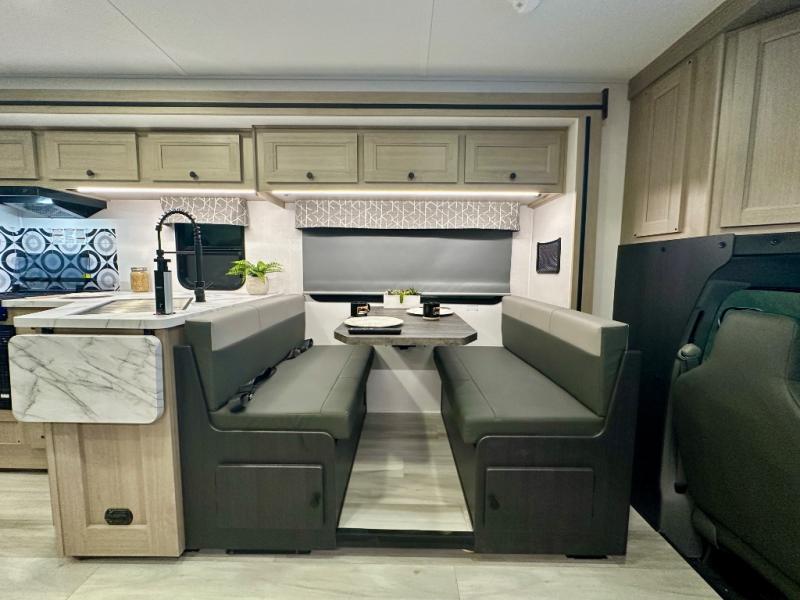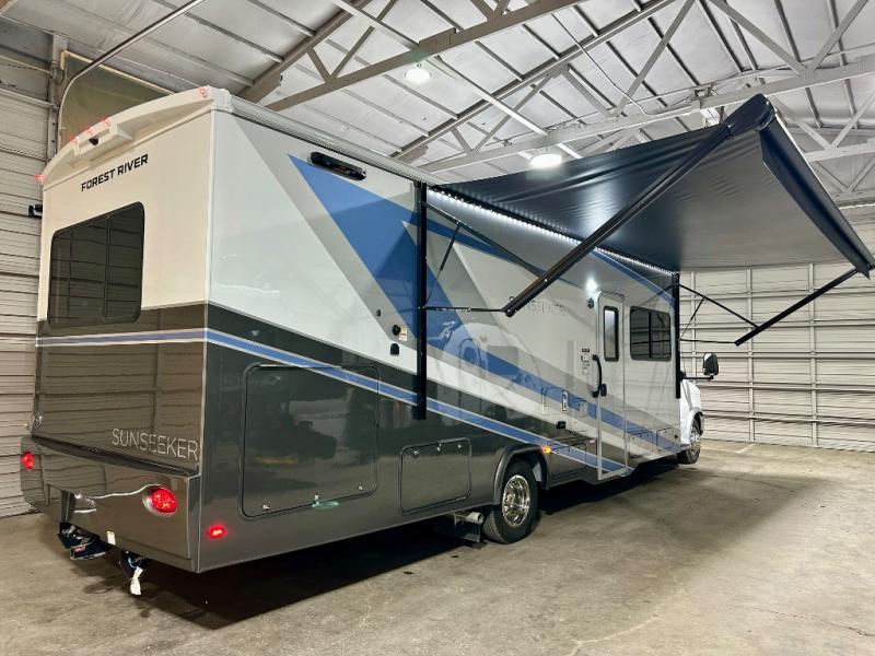 With any Sunseeker Classic Class C gas motorhome by Forest River, you will enjoy more features and quality construction at a great value! Each model comes standard with a fiberglass roof and 2" aluminum framed laminated sidewalls for maximum durability. The Winegard Air 360+ digital antenna is your all-in-one solution for your internet, TV, and FM signal needs, and you have Gateway 4G Wi-Fi capability too. The exterior has an outside shower, heated/enclosed tanks, Rotocast storage compartments, and a power awning with an LED light strip to name a few conveniences. Each drive will be made easy thanks to a 10" touchscreen CarPlay/Android radio with USB and Bluetooth, backup camera/side view cameras with a 3-way monitor, and Ultraleather seating for added comfort. You'll also love the black out roller shades, soft touch self-closing drawer guides, oxygen-infused shower head with a flexible extension, and many more interior comforts!
