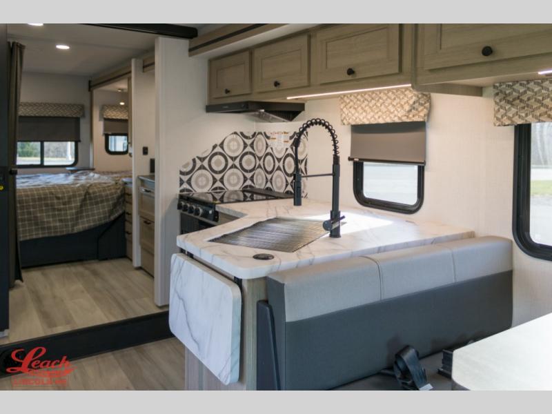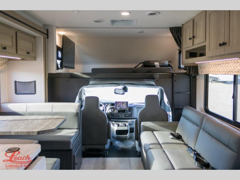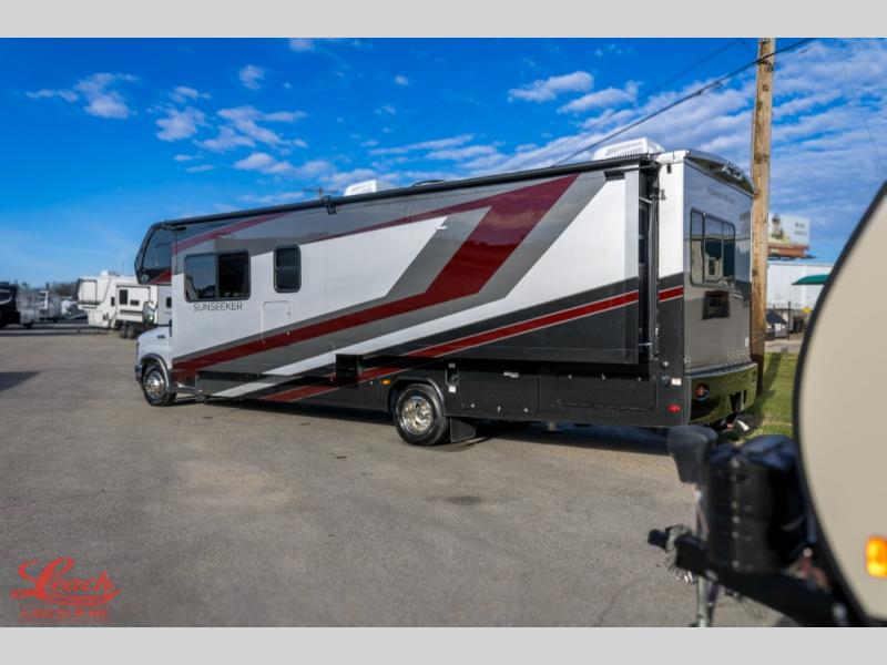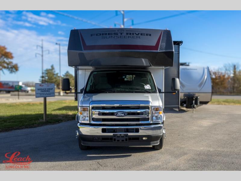 With any Sunseeker Classic Class C gas motorhome by Forest River, you will enjoy more features and quality construction at a great value! Each model comes standard with a fiberglass roof and 2" aluminum framed laminated sidewalls for maximum durability. The Winegard Air 360+ digital antenna is your all-in-one solution for your internet, TV, and FM signal needs, and you have Gateway 4G Wi-Fi capability too. The exterior has an outside shower, heated/enclosed tanks, Rotocast storage compartments, and a power awning with an LED light strip to name a few conveniences. Each drive will be made easy thanks to a 10" touchscreen CarPlay/Android radio with USB and Bluetooth, backup camera/side view cameras with a 3-way monitor, and Ultraleather seating for added comfort. You'll also love the black out roller shades, soft touch self-closing drawer guides, oxygen-infused shower head with a flexible extension, and many more interior comforts!
