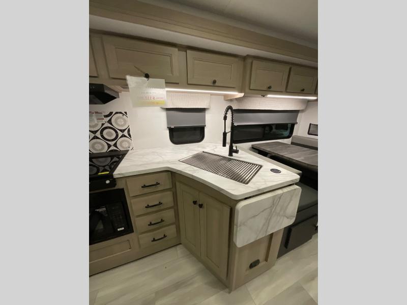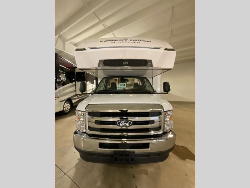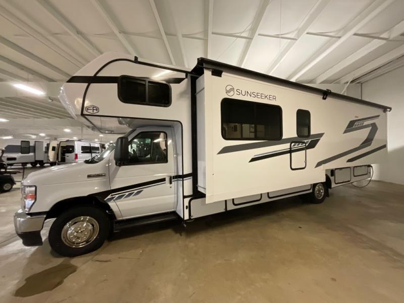 With any Sunseeker Classic Class C gas motorhome by Forest River, you will enjoy more features and quality construction at a great value! Each model comes standard with a fiberglass roof and 2" aluminum framed laminated sidewalls for maximum durability. The Winegard Air 360+ digital antenna is your all-in-one solution for your internet, TV, and FM signal needs, and you have Gateway 4G Wi-Fi capability too. The exterior has an outside shower, heated/enclosed tanks, Rotocast storage compartments, and a power awning with an LED light strip to name a few conveniences. Each drive will be made easy thanks to a 10" touchscreen CarPlay/Android radio with USB and Bluetooth, backup camera/side view cameras with a 3-way monitor, and Ultraleather seating for added comfort. You'll also love the black out roller shades, soft touch self-closing drawer guides, oxygen-infused shower head with a flexible extension, and many more interior comforts!