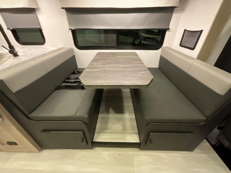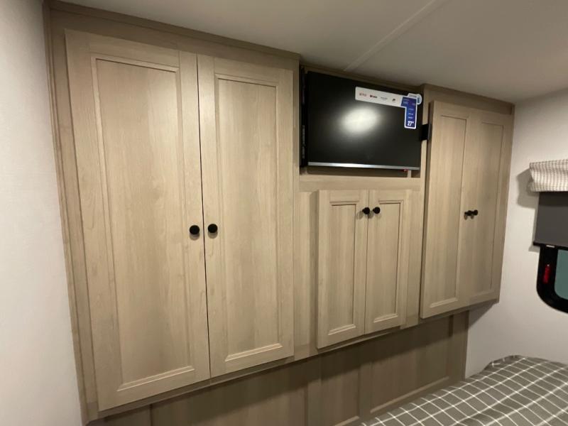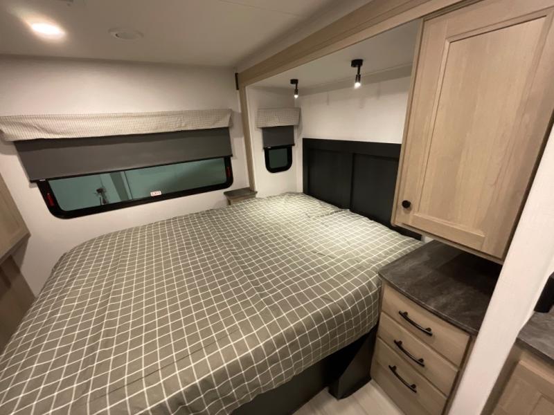 It's time to put boring vacations behind you and spend the rest of your life enjoying fun in the sun with this motorhome! You have lots of interior living space with a full-wall slide, and the rear private bedroom offers you a queen-size bed, 12V bedroom TV, linen closet, and two wardrobes. You'll be right next to the split-style bathroom when you're in the bedroom, and the kitchen is just on the other side of the bathroom. In the kitchen is where you will find the convection microwave, flip-up countertop, 10.7-cubic foot refrigerator, pantry, and three-burner range. You'll also have some lounging space with the sofa and booth dinette, and the bunk over the cab can be switched out for the optional Trekker cap with built-in entertainment and storage.