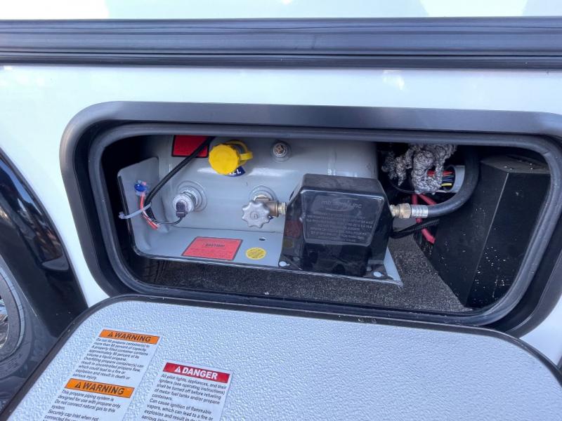 Upon entering this unit, you’re greeted by a spacious 60" x 80" cab-over bunk, providing plenty of comfortable sleeping space for family or guests. Near the entrance, a swing-arm 12V TV lets you enjoy your favorite shows and movies while on the road. Moving toward the center, you’ll find a pantry and a 10.7 cu. ft. refrigerator, perfect for storing both fresh groceries and dry goods. Adjacent to it is the well-designed wet bath, equipped with an oxygen-infused showerhead and flexible extension for a refreshing experience, complemented by a shower skylight and electric roof fan for added light and ventilation. Across the way, the kitchen comes fully equipped with a recessed two-burner range and flush glass cover, a convection microwave/air fryer, and a flip-up countertop that expands your workspace, making meal prep easy and efficient. At the rear, the inviting U-shaped dinette offers a cozy spot to relax, dine, or gather with friends, and at night, it effortlessly converts into an additional sleeping area so you can rest in complete comfort.