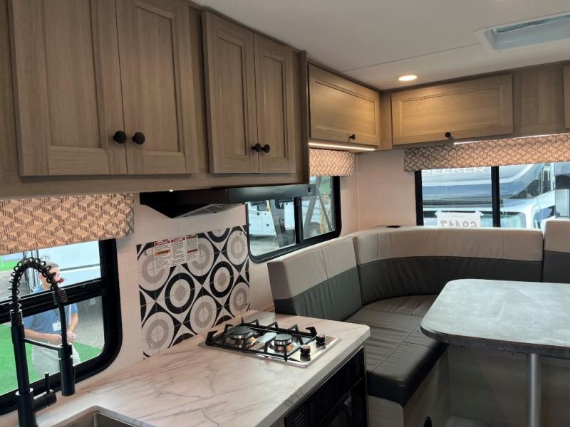 Each Forest River Sunseeker LE Class C gas motorhome comes with multiple features for your comfort! These great features are a backup/sideview cameras with three-way monitor, a fiberglass front cap, an LED lighting, a Winegard Air 360+ antenna, slide out awnings, and a 6 Gallon DSI gas/electric water heater. All of these premium features rest on a Superlite composite substrate, 2" aluminum framed laminated sidewalls, block-foam insulation, and a fiberglass roof. There is a satellite/cable connection, a 30,000 BTU furnace, a Maxx Air multi-speed power fan, and black-out roller shades.