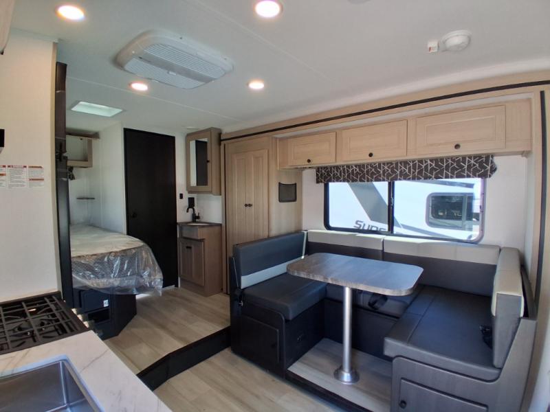 Each Forest River Sunseeker LE Class C gas motorhome comes with the LE Premier Package for your benefit! This package includes great features like backup/sideview cameras with rearview mirror monitor, a fiberglass front cap, an in-dash premium sound system with Bluetooth, a Winegard Air 360+ antenna with preparation for Gateway 4G Wi-Fi, toppers for the slide outs, and a 15,000 BTU ceiling-ducted, ultra-quiet roof air with heat pump. All of these premium features rest on a Superlite composite substrate, 2"-thick gel-coat sidewalls with lightweight composite waterproof material, block-foam insulation, and a fiberglass roof. There is a satellite/cable connection, a 30,000 BTU furnace, a Maxx Air multi-speed power fan, and black-out roller shades.