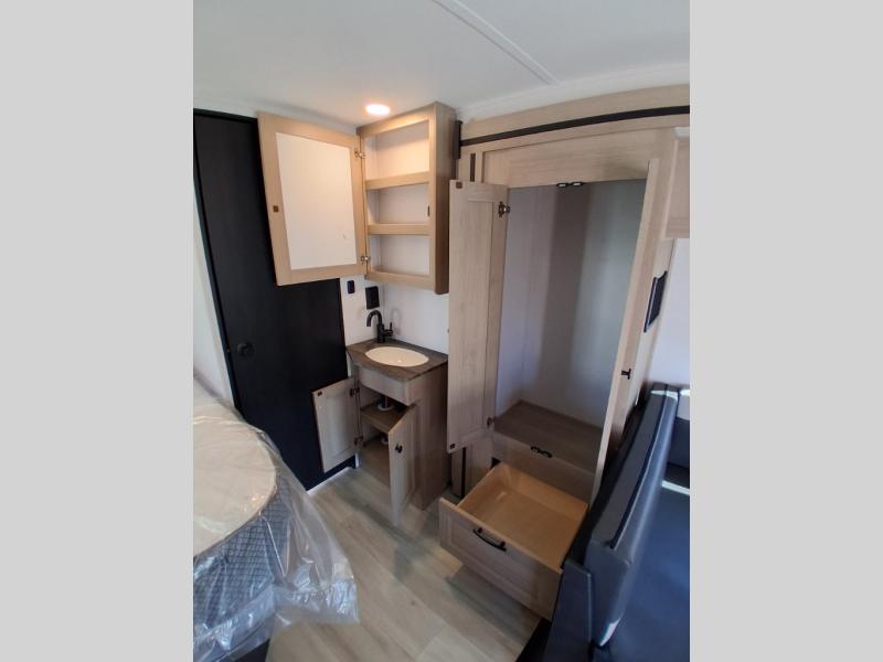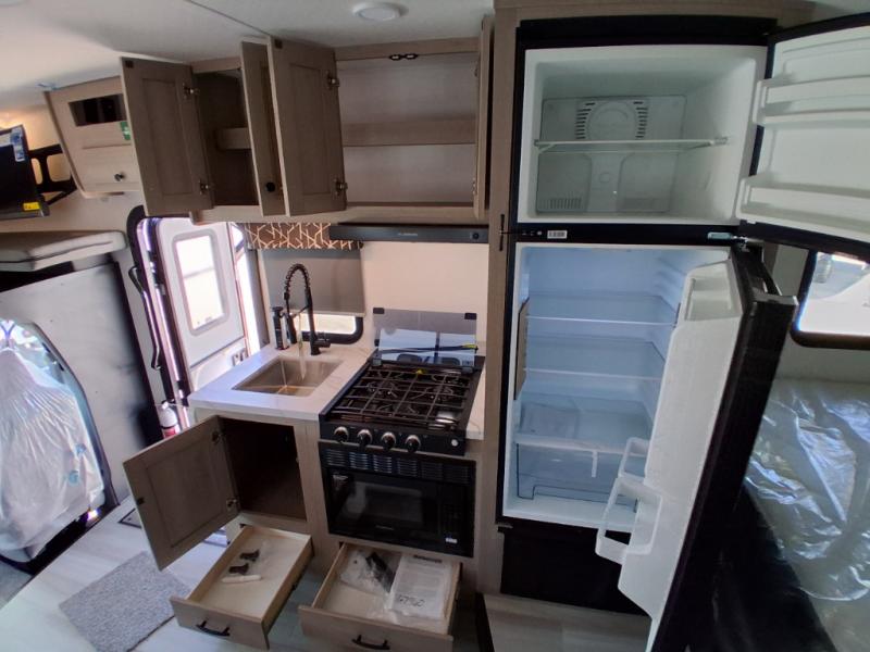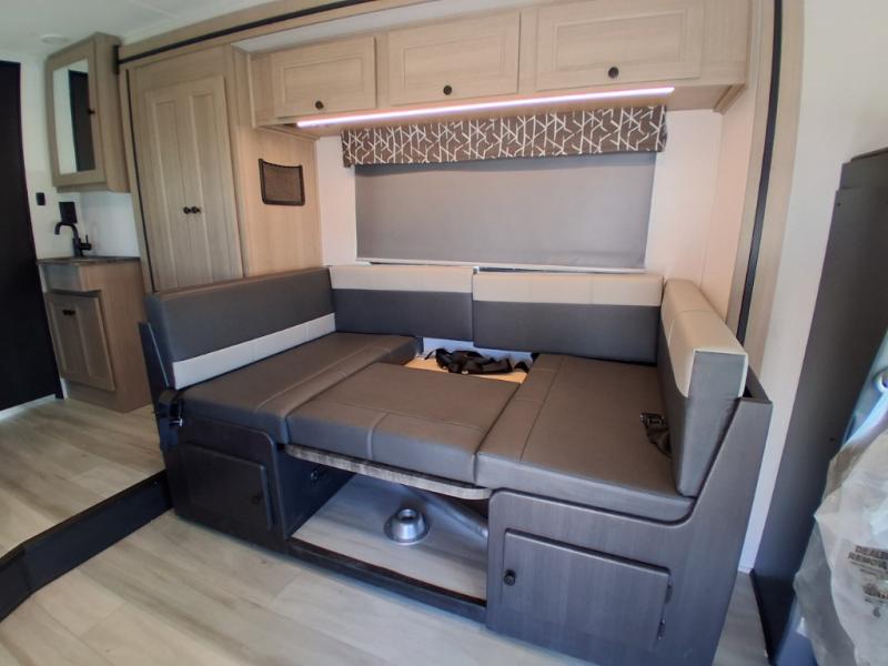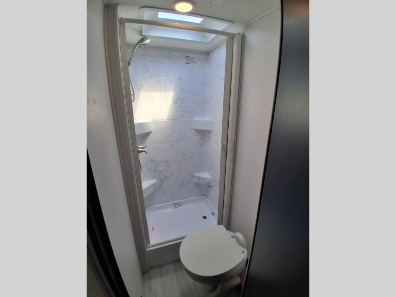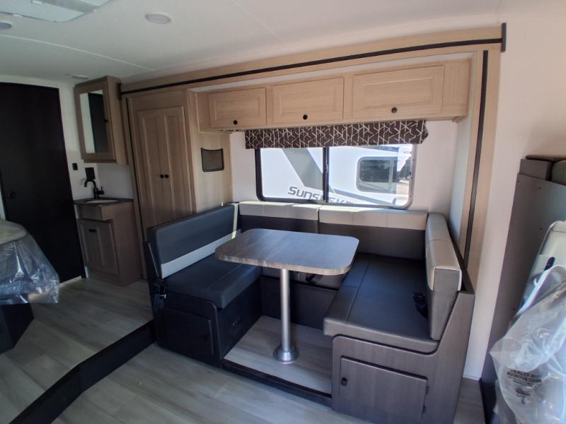 Take your family on great adventures in this Sunseeker LE Class C gas motorhome! This coach has a full kitchen equipped with a flip-up countertop, 1.3-cubic foot convection microwave, recessed three-burner range, soft-touch self-closing drawer guides, and a 10.7-cubic foot 12V refrigerator. Across from the kitchen is a U-shaped dinette that also has four seatbelts for traveling, and there are two large storage drawers in the dinette. The bathroom has an electric roof fan, an oxygen-infused shower head with flexible extension, and a shower skylight for more natural light in the morning. There is also a 12V LED TV for entertainment at night out in the main living area.