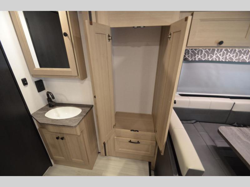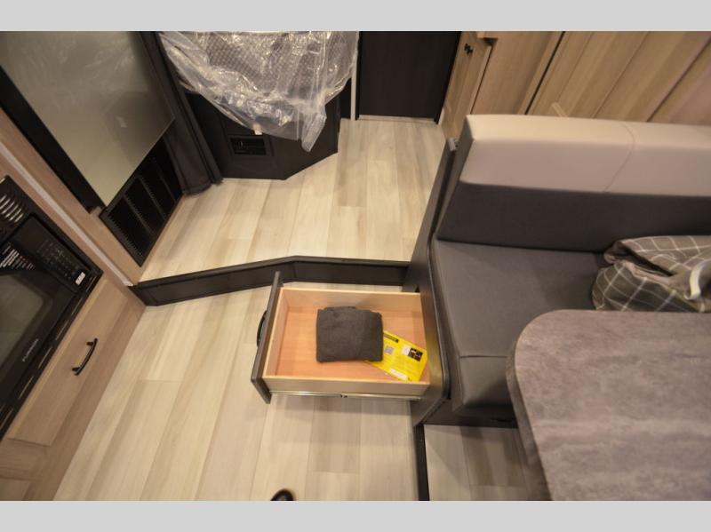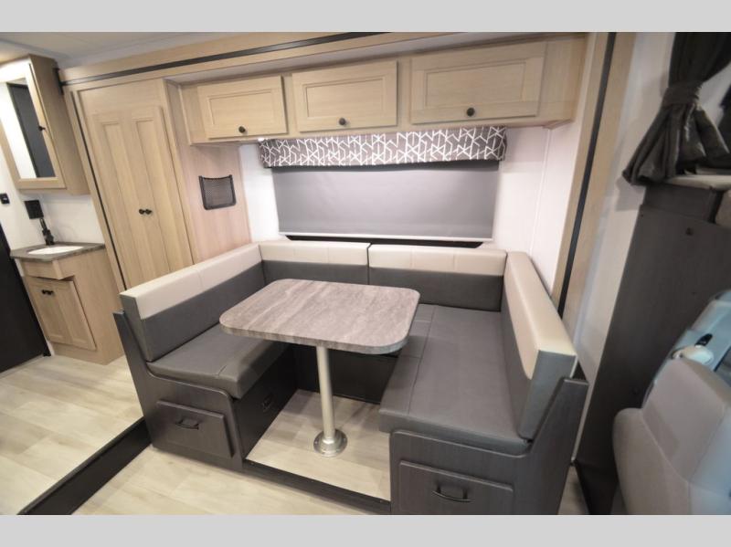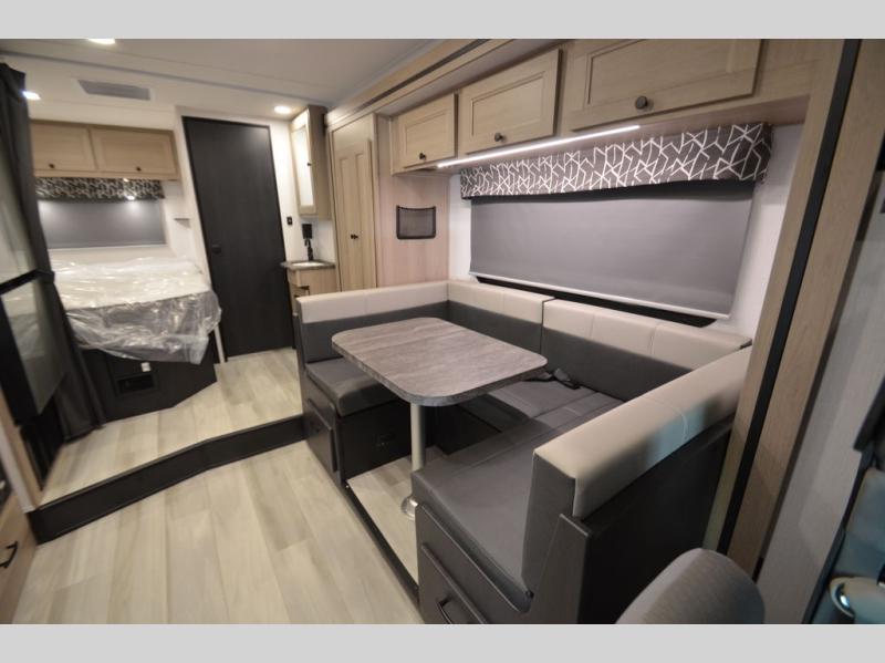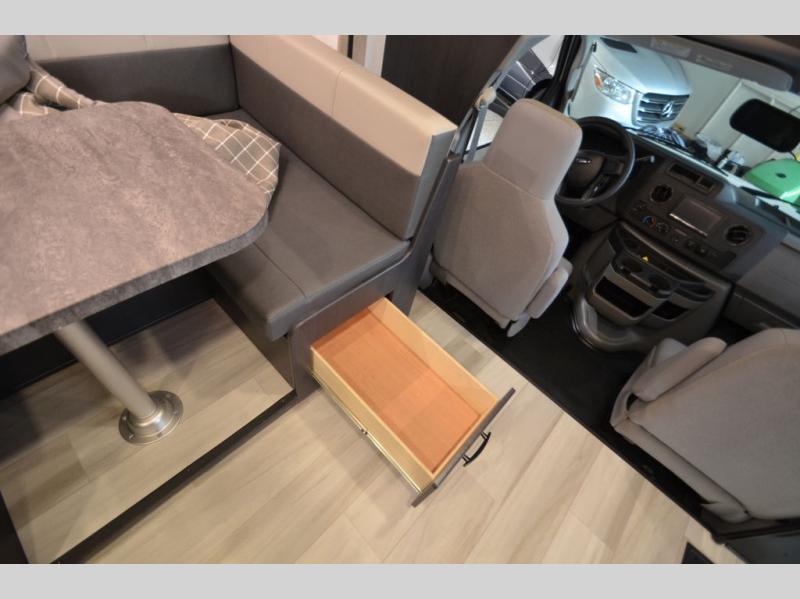 Take your family on great adventures in this Sunseeker LE Class C gas motorhome! This coach has a full kitchen equipped with a flip-up countertop, 1.3-cubic foot convection microwave, recessed three-burner range, soft-touch self-closing drawer guides, and a 10.7-cubic foot 12V refrigerator. Across from the kitchen is a U-shaped dinette that also has four seatbelts for traveling, and there are two large storage drawers in the dinette. The bathroom has an electric roof fan, an oxygen-infused shower head with flexible extension, and a shower skylight for more natural light in the morning. There is also a 12V LED TV for entertainment at night out in the main living area.