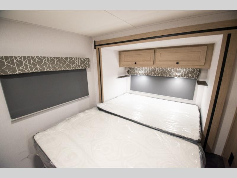 Don't forget to pack your sense of adventure when you load up the Roto-cast storage compartments on this Sunseeker LE Class C gas motorhome! You'll also have room on the interior to pack some belongings away in the two large storage drawers in the booth dinette. In the kitchen there is a cordless 12V charging plate that you can use to fill your phones with power, and the convection microwave will make meals super easily. An overhead bunk ladder lets you get to the 60" x 80" bunk over the cab without much effort, and you also have a queen-size bed in the back for the easiest night of sleep. Wake up in the morning and grab a cold glass of juice from the 10.7-cubic foot refrigerator before starting your day hiking or sightseeing.