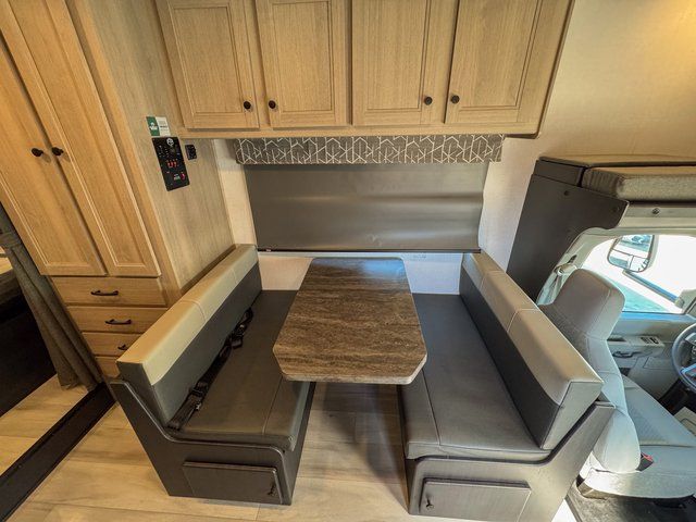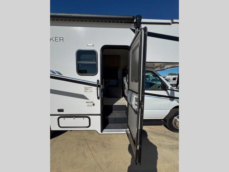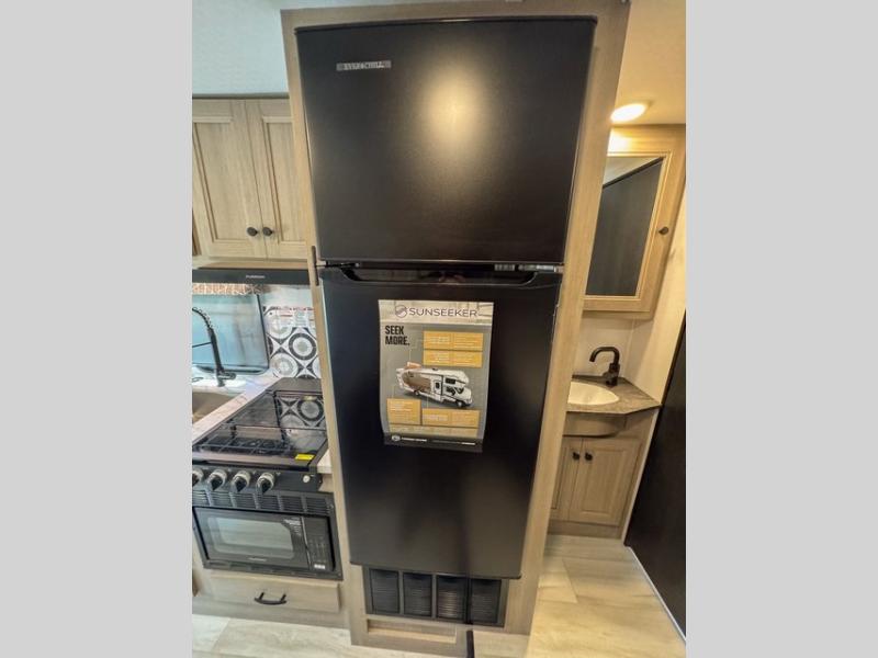 Don't forget to pack your sense of adventure when you load up the Roto-cast storage compartments on this Sunseeker LE Class C gas motorhome! You'll also have room on the interior to pack some belongings away in the two large storage drawers in the booth dinette. In the kitchen there is a cordless 12V charging plate that you can use to fill your phones with power, and the convection microwave will make meals super easily. An overhead bunk ladder lets you get to the 60" x 80" bunk over the cab without much effort, and you also have a queen-size bed in the back for the easiest night of sleep. Wake up in the morning and grab a cold glass of juice from the 10.7-cubic foot refrigerator before starting your day hiking or sightseeing.