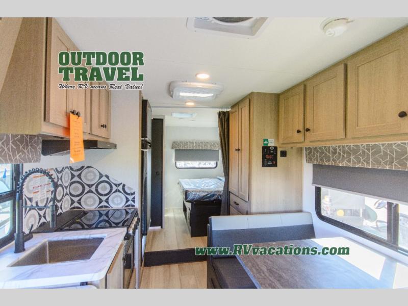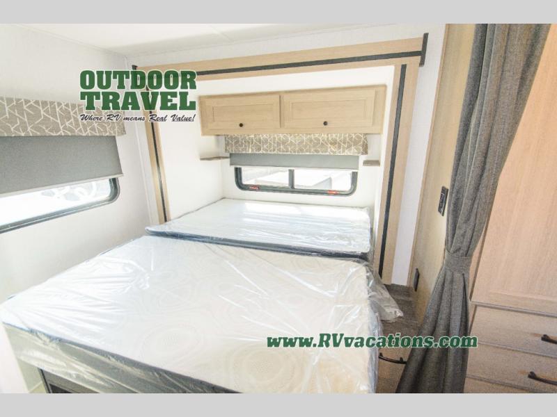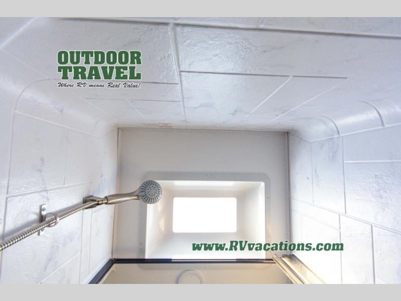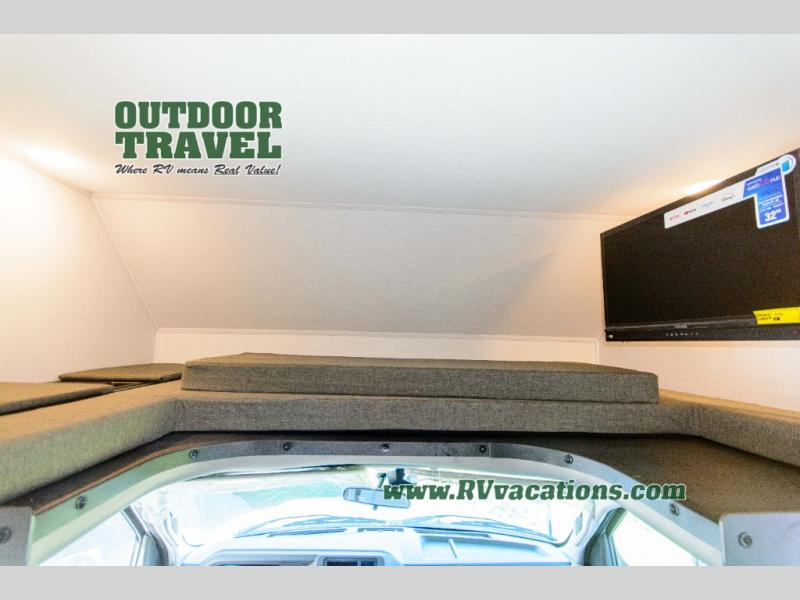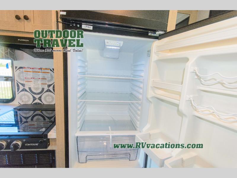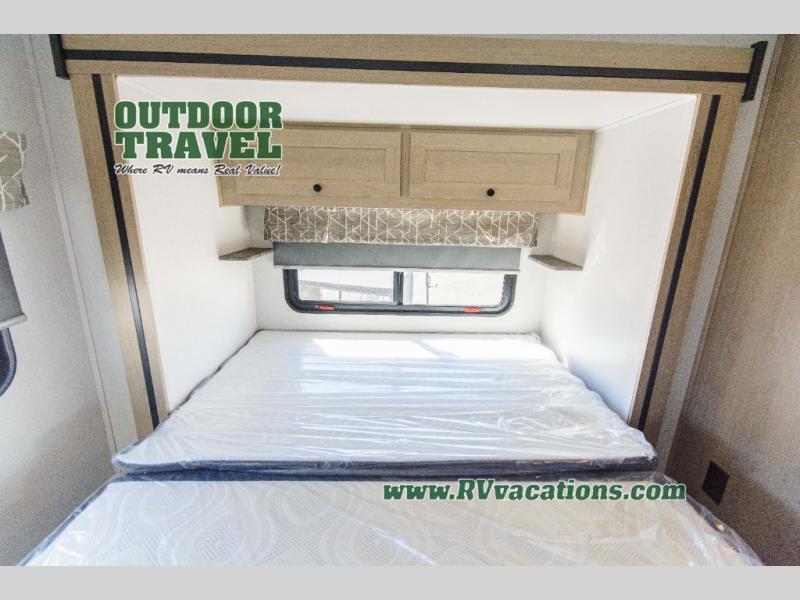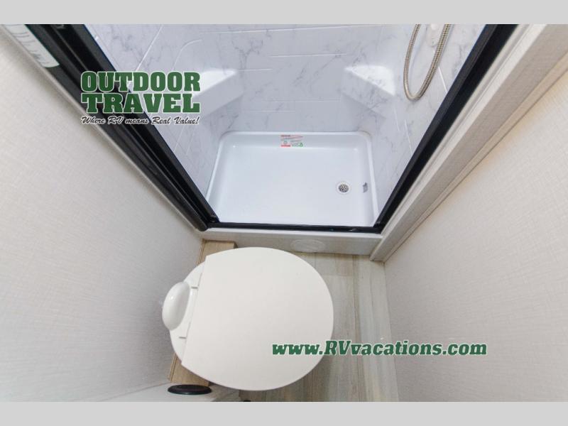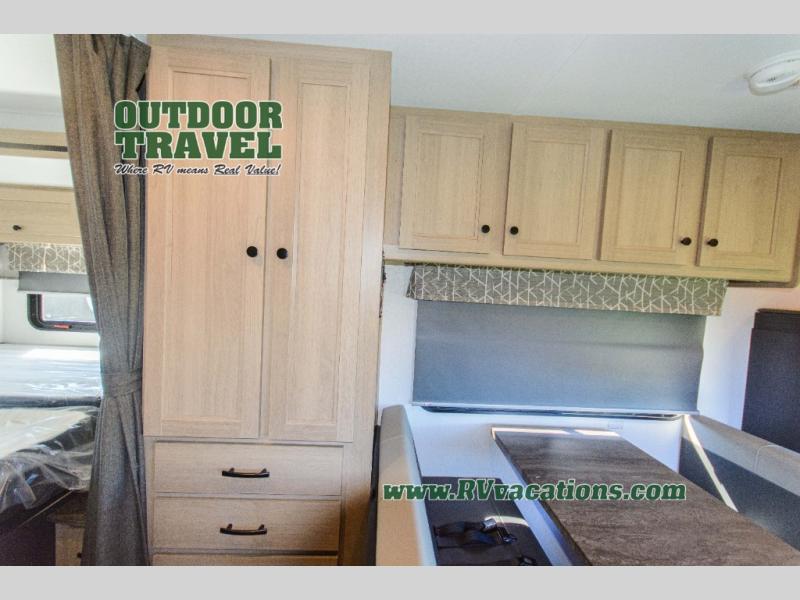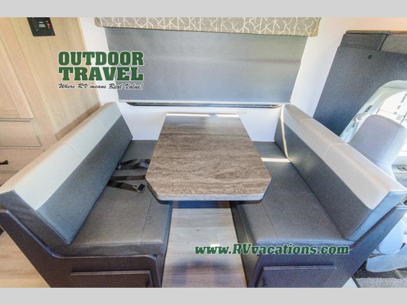 Don't forget to pack your sense of adventure when you load up the Roto-cast storage compartments on this Sunseeker LE Class C gas motorhome! You'll also have room on the interior to pack some belongings away in the two large storage drawers in the booth dinette. In the kitchen there is a cordless 12V charging plate that you can use to fill your phones with power, and the convection microwave will make meals super easily. An overhead bunk ladder lets you get to the 60" x 80" bunk over the cab without much effort, and you also have a queen-size bed in the back for the easiest night of sleep. Wake up in the morning and grab a cold glass of juice from the 10.7-cubic foot refrigerator before starting your day hiking or sightseeing.