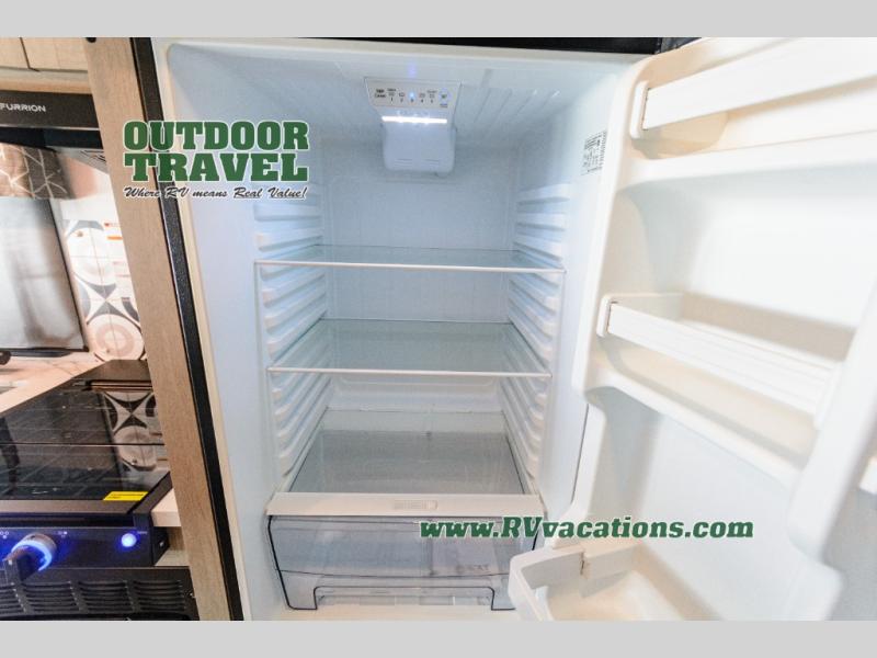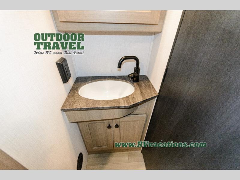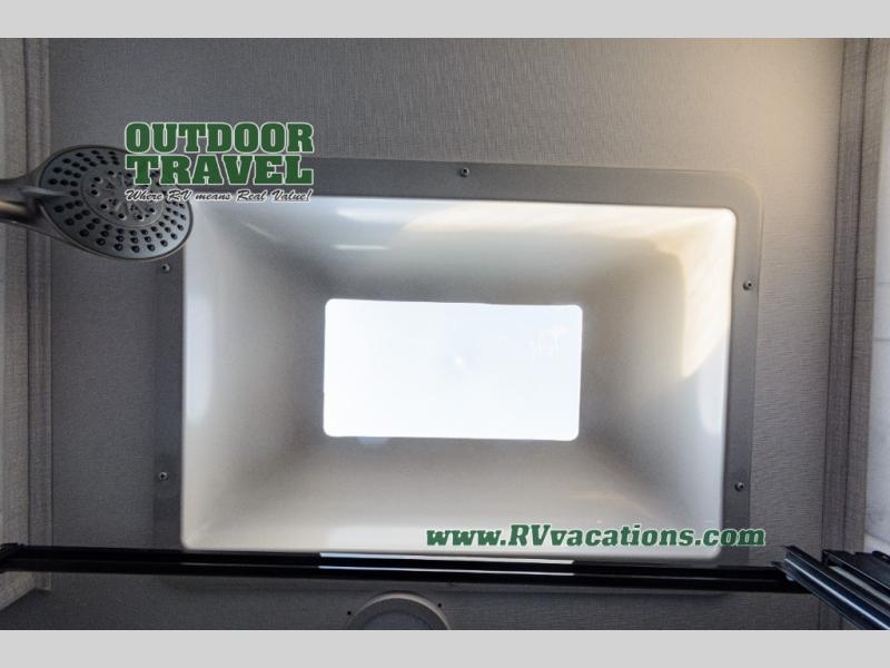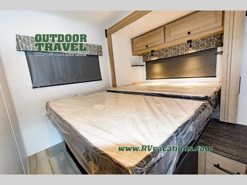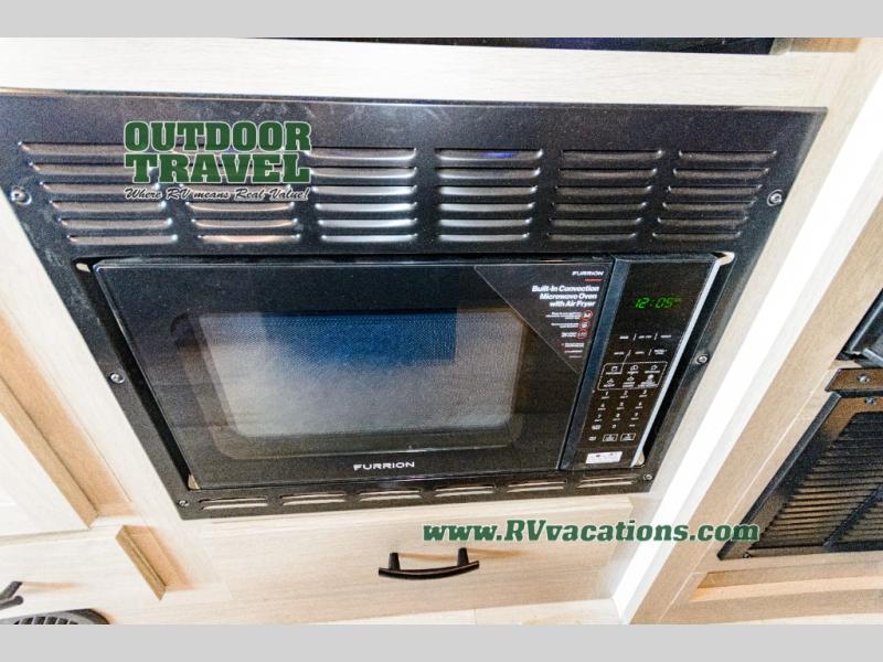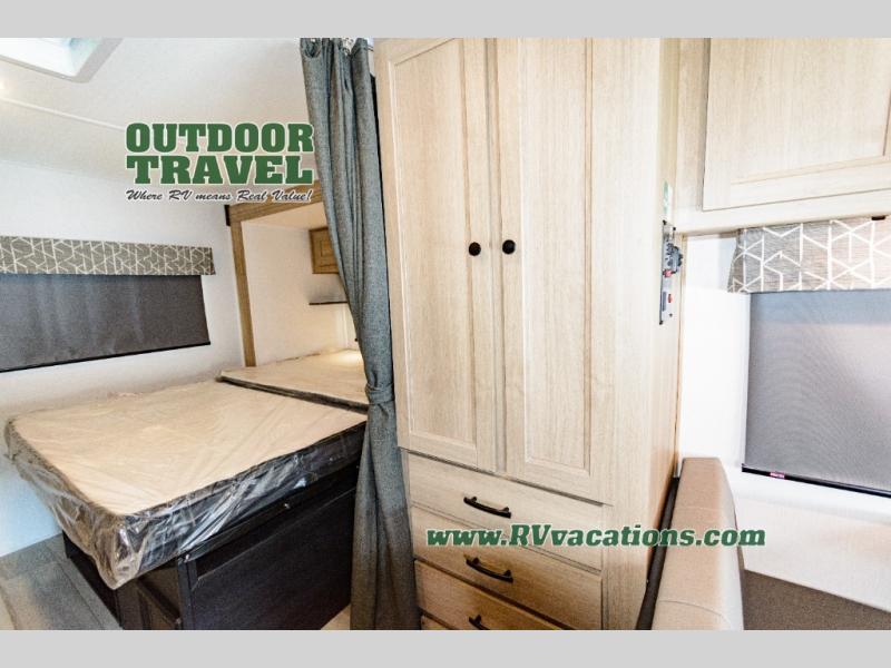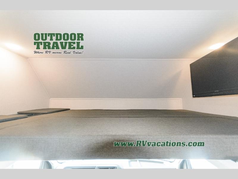 Don't forget to pack your sense of adventure when you load up the Roto-cast storage compartments on this Sunseeker LE Class C gas motorhome! You'll also have room on the interior to pack some belongings away in the wardrobe and overhead cabinets. In the kitchen there is a cordless 12V charging plate that you can use to fill your phones with power, and the convection microwave will make meals super easily. An overhead bunk ladder lets you get to the 60" x 80" bunk over the cab without much effort, and you also have a queen-size bed in the back for the easiest night of sleep. Wake up in the morning and grab a cold glass of juice from the 10.7-cubic foot refrigerator before starting your day hiking or sightseeing.