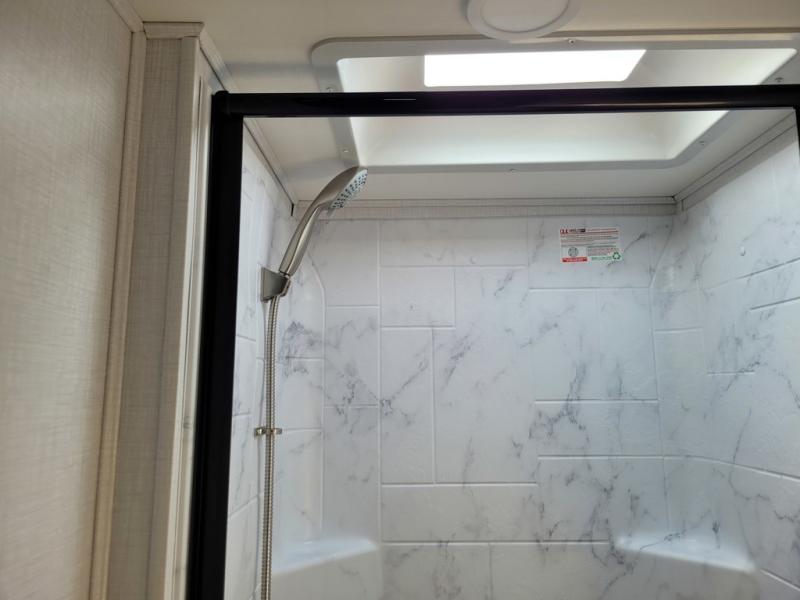You'll want to plan more trips with this Sunseeker LE Class C gas motorhome! The queen-size bed can be sectioned off into a semi-private bedroom when you draw the privacy curtain, and the bathroom is also included in this space, so this creates a makeshift master suite. The U-shaped dinette has four seatbelts for traveling. The kitchen includes a recessed three-burner range that you can use whenever you want to fry up some pancakes, and there is a convection microwave that will allow you to prepare fast meals. A cordless 12V charging plate is also included in the kitchen, and it allows you to charge your electronic devices.