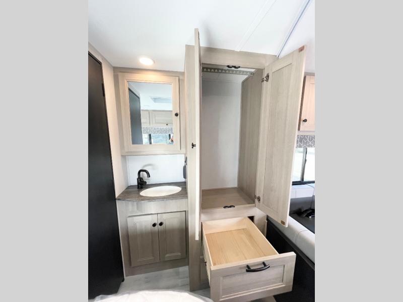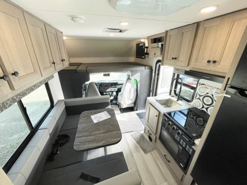 You'll want to plan more trips with this Sunseeker LE Class C gas motorhome! The queen-size bed can be sectioned off into a semi-private bedroom when you draw the privacy curtain, and the bathroom is also included in this space, so this creates a makeshift master suite. The U-shaped dinette has four seatbelts for traveling, and it also has two large storage drawers for keeping your board games and kitchen supplies hidden away. The kitchen includes a recessed three-burner range that you can use whenever you want to fry up some pancakes, and there is a convection microwave that will allow you to prepare fast meals. A cordless 12V charging plate is also included in the kitchen, and it allows you to charge your electronic devices.