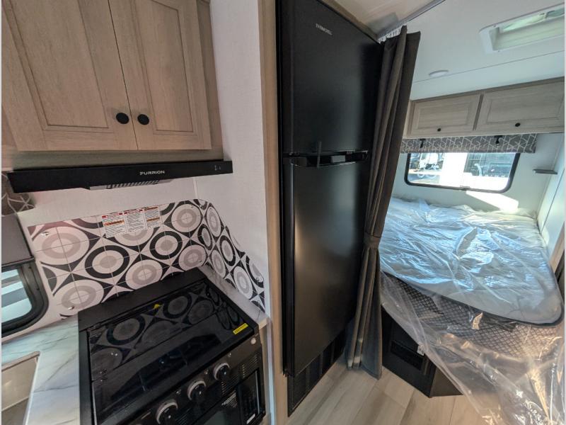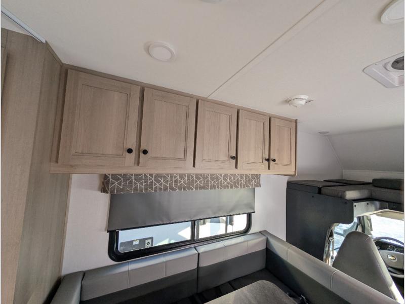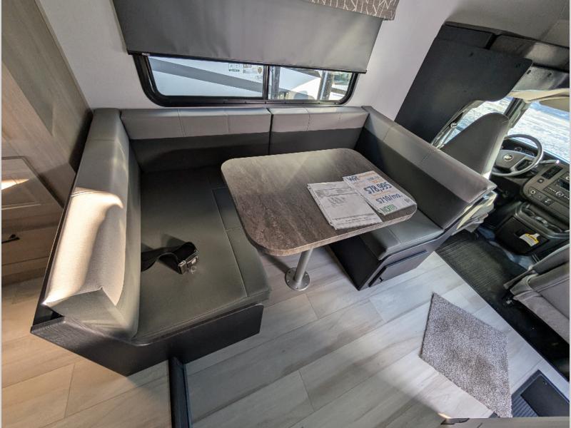 You'll want to plan more trips with this Sunseeker LE Class C gas motorhome! The queen-size bed can be sectioned off into a semi-private bedroom when you draw the privacy curtain, and the bathroom is also included in this space, so this creates a makeshift master suite. The U-shaped dinette has four seatbelts for traveling. The kitchen includes a recessed three-burner range that you can use whenever you want to fry up some pancakes, and there is a convection microwave that will allow you to prepare fast meals. A cordless 12V charging plate is also included in the kitchen, and it allows you to charge your electronic devices.