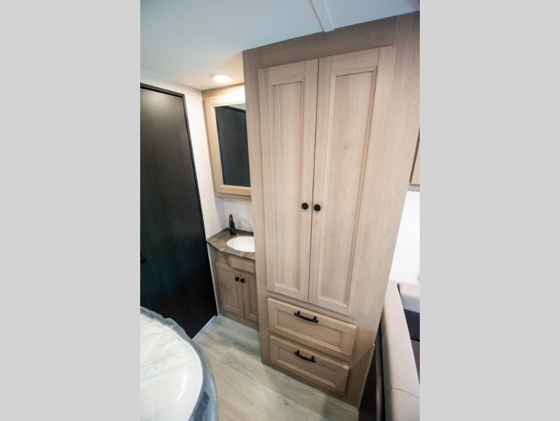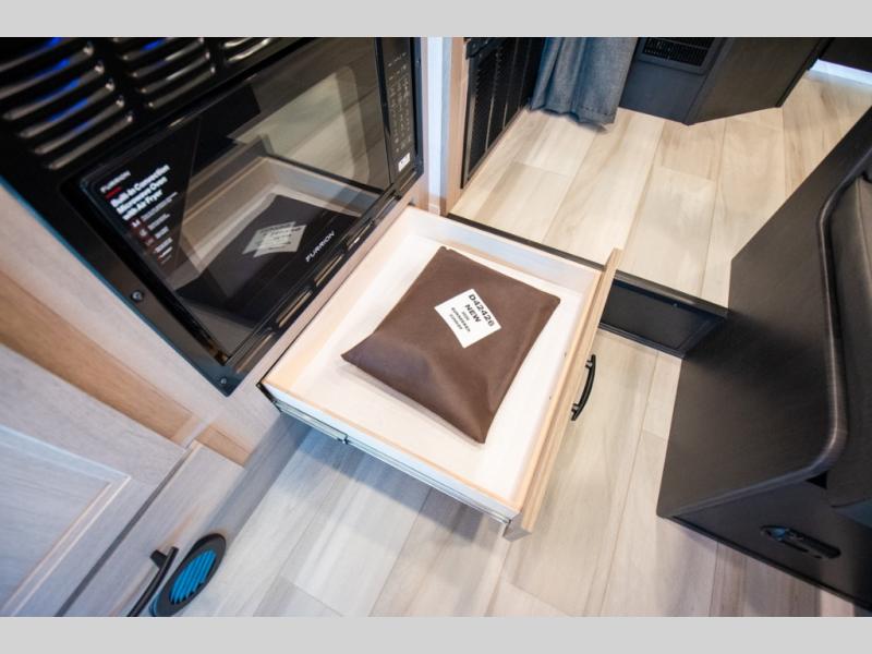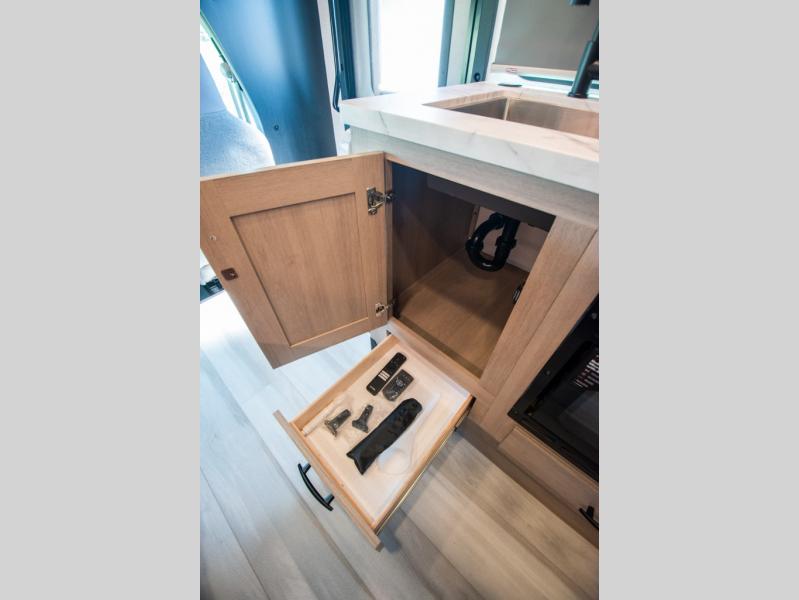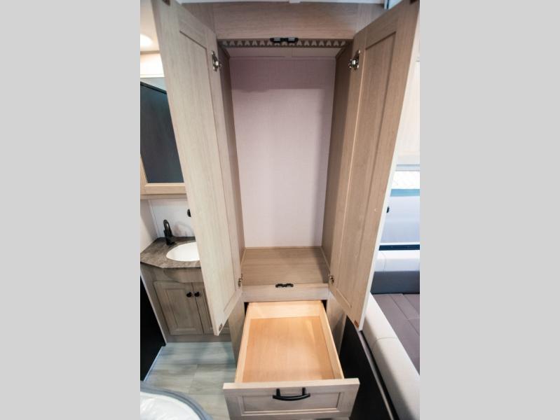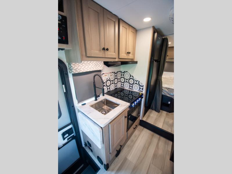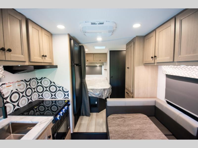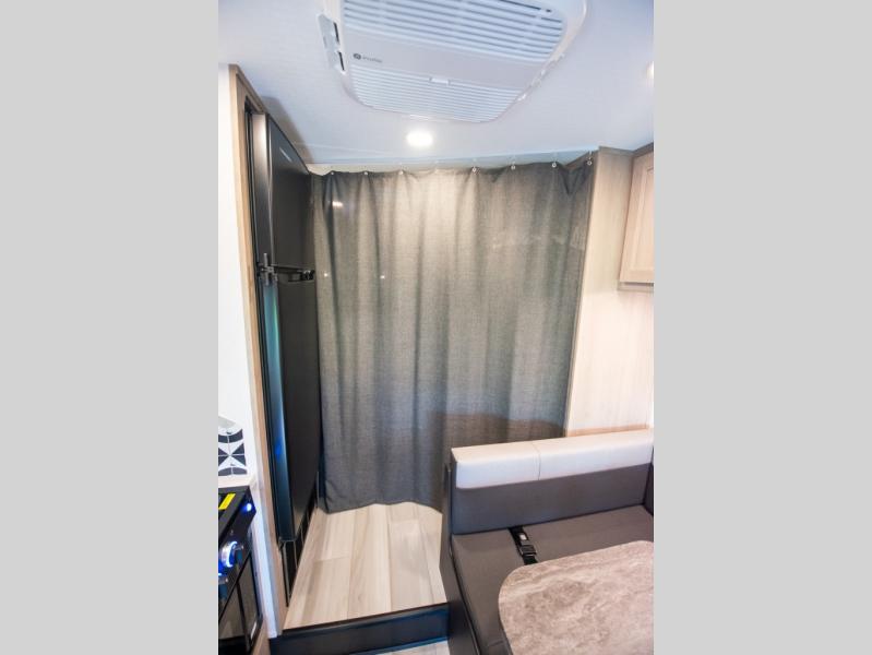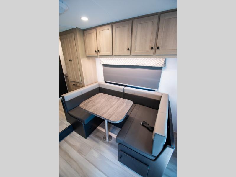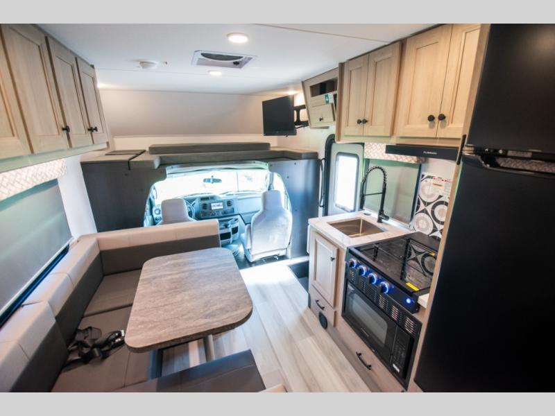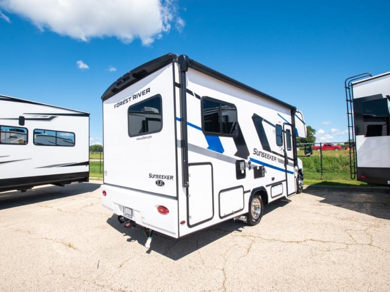 You'll want to plan more trips with this Sunseeker LE Class C gas motorhome! The queen-size bed can be sectioned off into a semi-private bedroom when you draw the privacy curtain, and the bathroom is also included in this space, so this creates a makeshift master suite. The U-shaped dinette has four seatbelts for traveling, and it also has two large storage drawers for keeping your board games and kitchen supplies hidden away. The kitchen includes a recessed three-burner range that you can use whenever you want to fry up some pancakes, and there is a convection microwave that will allow you to prepare fast meals. A cordless 12V charging plate is also included in the kitchen, and it allows you to charge your electronic devices.
