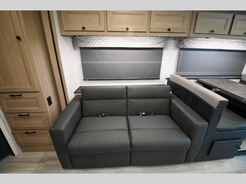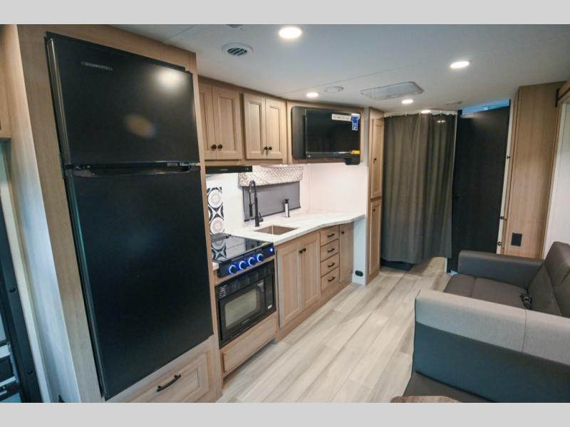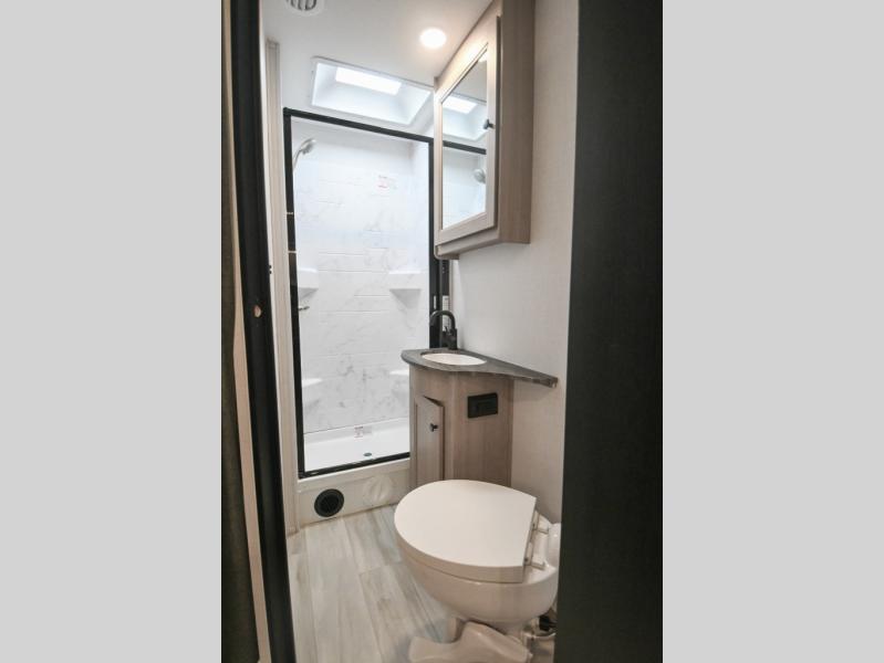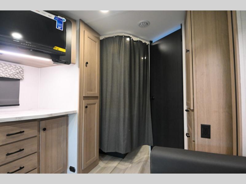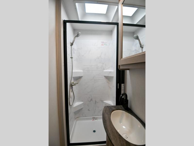 Don't make the mistake of passing up this Sunseeker LE Class C gas motorhome! There is a full bathroom with a shower skylight, oxygen-infused shower head with flexible extension, and an electric roof fan, and the bathroom is right next to the bedroom for convenience. The pantry, linen closet, wardrobe, and overhead storage offer you places to tuck away your belongings, and there are also two large storage drawers in the booth dinette as well. While you're resting on the sofa, you can watch the 12V LED TV, or you can chat with the chef who is preparing dinner on the recessed three-burner range or in the convection microwave.