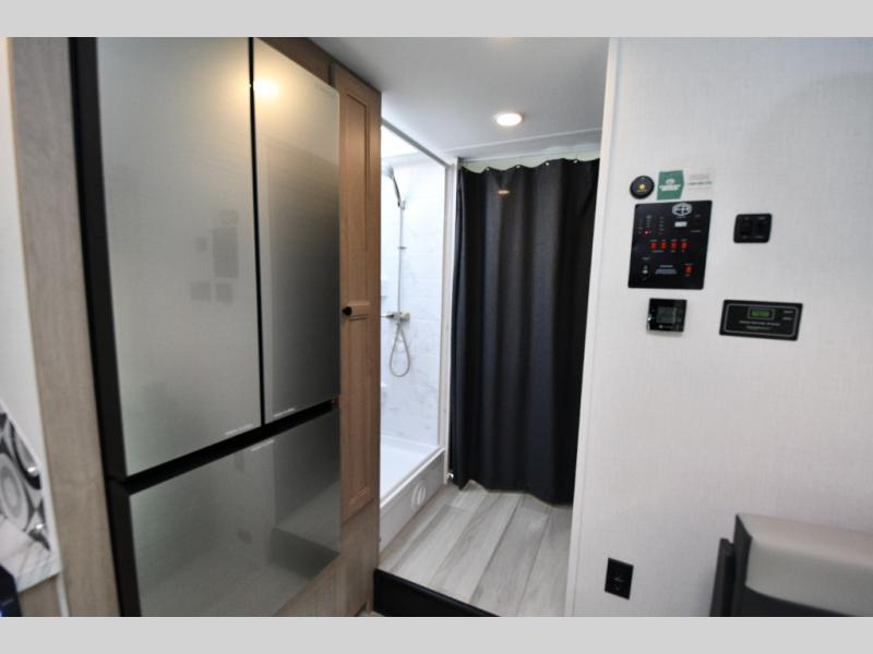 LE Premier Package · Automatic Leveling Jacks · Roof Mount Solar 12V Charging System (Includes 2nd 12V Battery) · Dual High Efficiency A/C/Heat Pump with Energy Shedding System · RVIA Seal