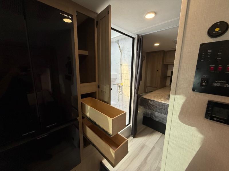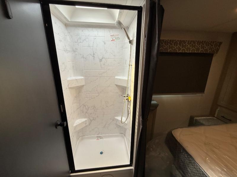 Each Forest River Sunseeker LE Class C gas motorhome comes with the LE Premier Package for your benefit! This package includes great features like backup/sideview cameras with rearview mirror monitor, a fiberglass front cap, an in-dash premium sound system with Bluetooth, a Winegard Air 360+ antenna with preparation for Gateway 4G Wi-Fi, toppers for the slide outs, and a 15,000 BTU ceiling-ducted, ultra-quiet roof air with heat pump. All of these premium features rest on a Superlite composite substrate, 2"-thick gel-coat sidewalls with lightweight composite waterproof material, block-foam insulation, and a fiberglass roof. There is a satellite/cable connection, a 30,000 BTU furnace, a Maxx Air multi-speed power fan, and black-out roller shades.