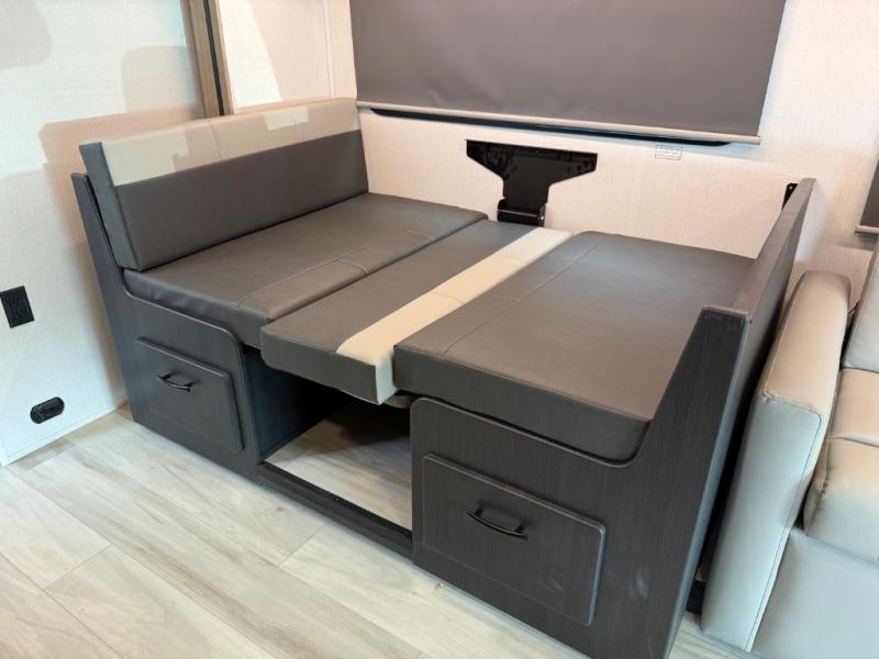 This Sunseeker LE Class C gas motorhome will allow you to travel to other states with your favorite people beside you! You can take a moment to enjoy a fresh cup of coffee in the morning while sitting at the booth dinette or on the sofa, or you can spend a little extra time creating a hearty breakfast in the kitchen on the recessed three-burner range. The 10.7-cubic foot refrigerator will store your cheese and milk, and the convection microwave will heat up leftovers with ease. The separated bathroom leads into the rear bedroom where you will find an RV queen bed with wardrobes on either side, and you can also head outside to enjoy the 15' 6" electric awning with LED lights before bed.