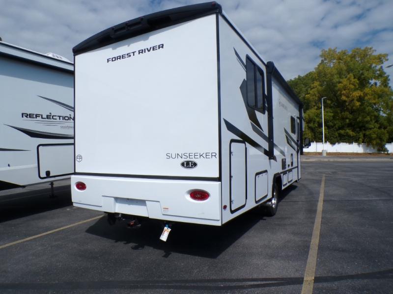 This Sunseeker LE Class C gas motorhome will allow you to travel to other states with your favorite people beside you! You can take a moment to enjoy a fresh cup of coffee in the morning while sitting at the booth dinette or on the sofa, or you can spend a little extra time creating a hearty breakfast in the kitchen on the recessed three-burner range. The 10.7-cubic foot refrigerator will store your cheese and milk, and the convection microwave will heat up leftovers with ease. The separated bathroom leads into the rear bedroom where you will find an RV queen bed with wardrobes on either side, and you can also head outside to enjoy the 15' 6" electric awning with LED lights before bed.
