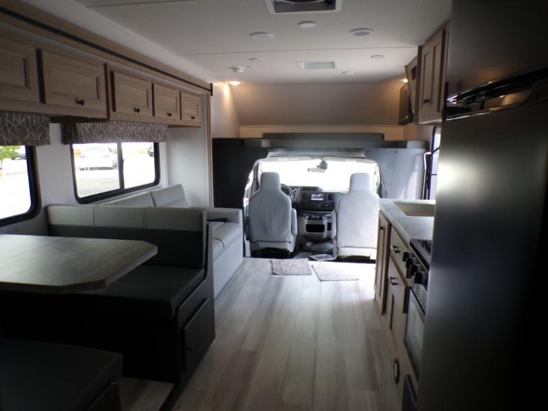 Each Forest River Sunseeker LE Class C gas motorhome comes with the LE Premier Package for your benefit! This package includes great features like backup/sideview cameras with rearview mirror monitor, a fiberglass front cap, an in-dash premium sound system with Bluetooth, a Winegard Air 360+ antenna with preparation for Gateway 4G Wi-Fi, toppers for the slide outs, and a 15,000 BTU ceiling-ducted, ultra-quiet roof air with heat pump. All of these premium features rest on a Superlite composite substrate, 2"-thick gel-coat sidewalls with lightweight composite waterproof material, block-foam insulation, and a fiberglass roof. There is a satellite/cable connection, a 30,000 BTU furnace, a Maxx Air multi-speed power fan, and black-out roller shades.