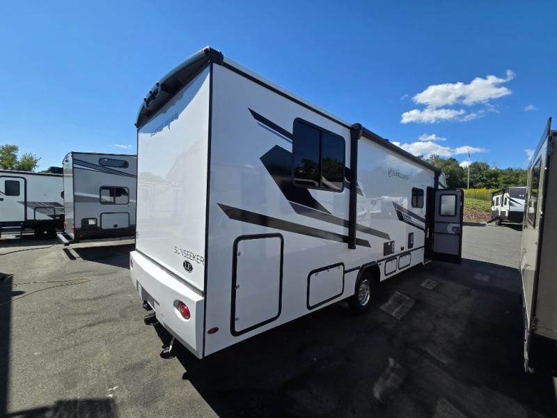 This Sunseeker LE Class C gas motorhome will allow you to travel to other states with your favorite people beside you! You can take a moment to enjoy a fresh cup of coffee in the morning while sitting at the booth dinette or on the sofa, or you can spend a little extra time creating a hearty breakfast in the kitchen on the recessed three-burner range. The 10.7-cubic foot refrigerator will store your cheese and milk, and the convection microwave will heat up leftovers with ease. The separated bathroom leads into the rear bedroom where you will find an RV queen bed with wardrobes on either side, and you can also head outside to enjoy the 15' 6" electric awning with LED lights before bed.