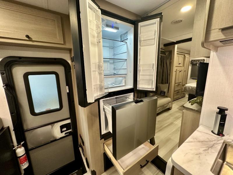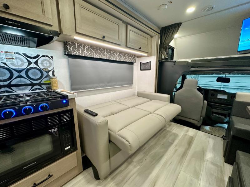 Each Forest River Sunseeker LE Class C gas motorhome comes with the LE Premier Package for your benefit! This package includes great features like backup/sideview cameras with rearview mirror monitor, a fiberglass front cap, an in-dash premium sound system with Bluetooth, a Winegard Air 360+ antenna with preparation for Gateway 4G Wi-Fi, toppers for the slide outs, and a 15,000 BTU ceiling-ducted, ultra-quiet roof air with heat pump. All of these premium features rest on a Superlite composite substrate, 2"-thick gel-coat sidewalls with lightweight composite waterproof material, block-foam insulation, and a fiberglass roof. There is a satellite/cable connection, a 30,000 BTU furnace, a Maxx Air multi-speed power fan, and black-out roller shades.