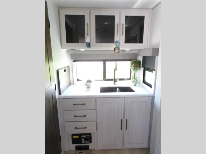With any Surveyor Legend travel trailer by Forest River you will enjoy quality craftsmanship, convenient amenities, and at-home comforts. The Azdel composite walls provide a longer-lasting trailer, and the power tongue jack with a hitch light will get you back on the road in no-time. There are also Goodyear tires and a tire pressure monitoring system for hassle-free towing. Each model includes the Surveyor Legend Package that comes standard with oversized dinette storage access doors, front slam latch baggage doors, plus an automotive style tinted front windshield. You'll appreciate camping with a tankless water heater for endless hot showers, a 2" accessory hitch to bring bikes along, plus carpet-free interiors and a central vacuum system for easy clean up.
