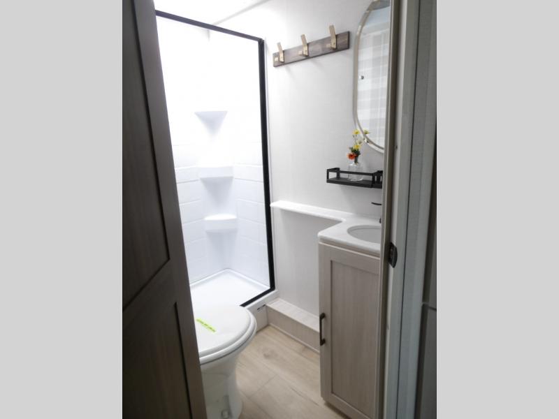 With any Surveyor Legend travel trailer by Forest River you will enjoy quality craftsmanship, convenient amenities, and at-home comforts. The Azdel composite walls provide a longer-lasting trailer, and the power tongue jack with a hitch light will get you back on the road in no-time. There are also Goodyear tires and a tire pressure monitoring system for hassle-free towing. Each model includes the Surveyor Legend Package that comes standard with oversized dinette storage access doors, front slam latch baggage doors, plus an automotive style tinted front windshield. You'll appreciate camping with a tankless water heater for endless hot showers, a 2" accessory hitch to bring bikes along, plus carpet-free interiors and a central vacuum system for easy clean up.