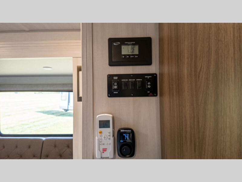 - 20-ft power awning with LED lighting and 31,500 BTU soft-start A/C