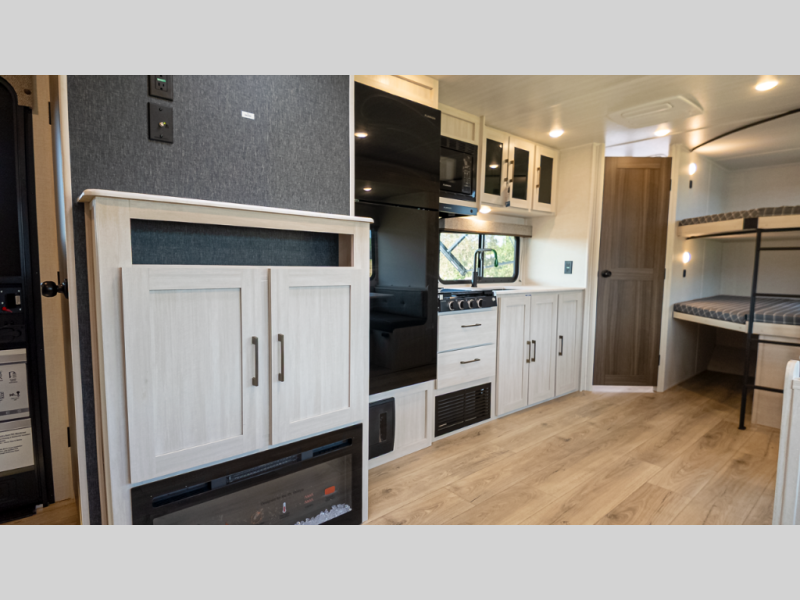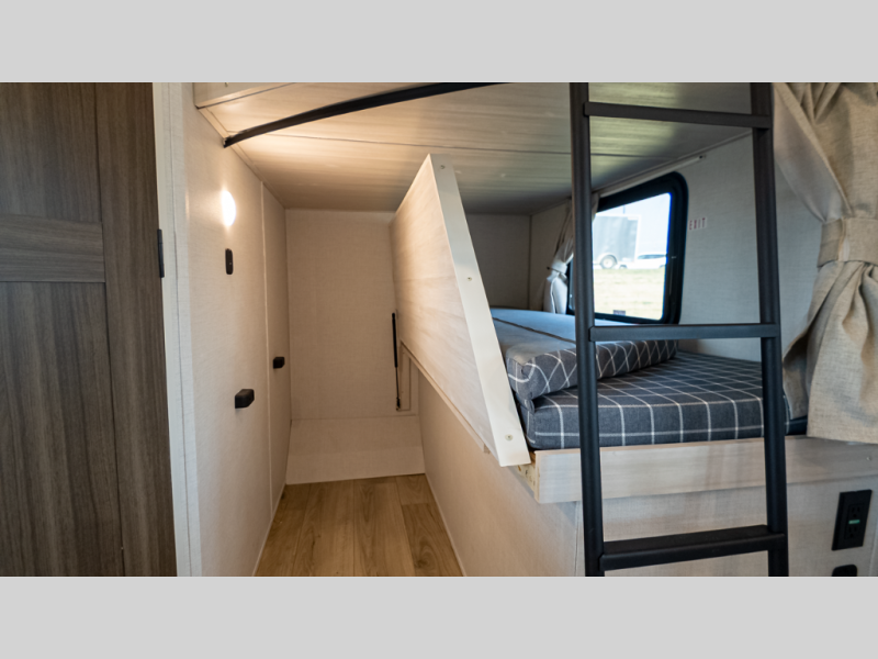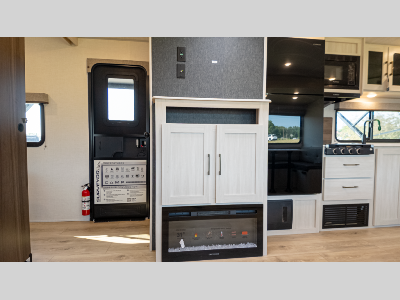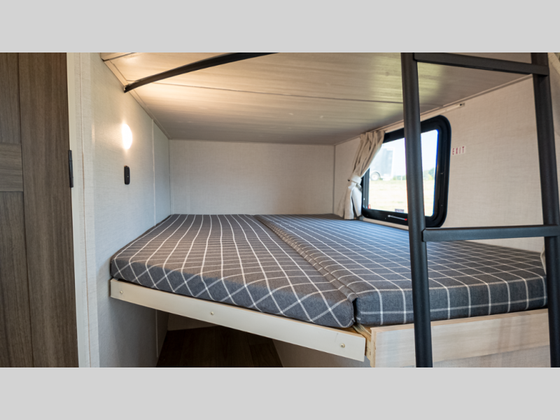 Q: Want a durable bunkhouse that handles weather and space smartly? A: The 2026 Surveyor Camp 27CAMP packs double-size bunks, a queen suite, large slide living area, walk-in pantry, and extended-season insulation all in one rugged, towable trailer.