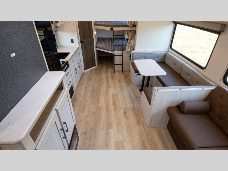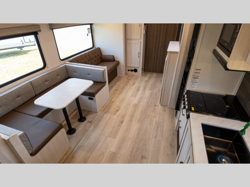- Large slide-out with U-shaped dinette and sofa for living flexibility